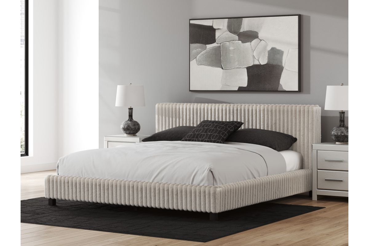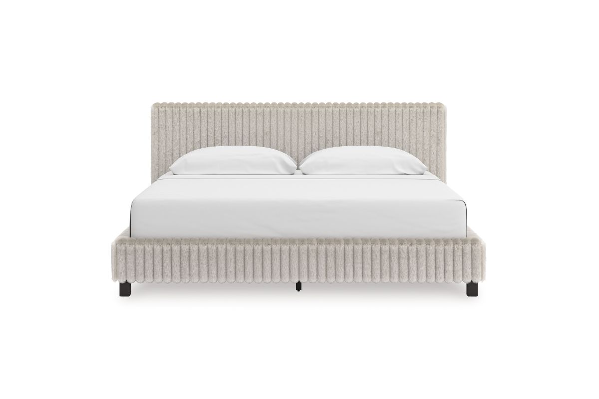If casual and contemporary are your jam, you’re gonna love this king upholstered bed. Covered from head to toe in a luxuriously soft gray corded fabric, it has a chic flair that's sure to wake up your inner sanctum’s style. We’re talkin’ relaxed refinement.