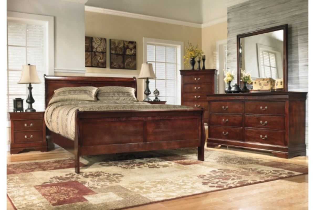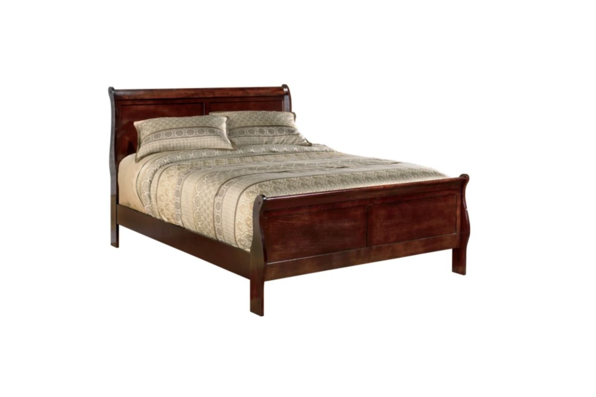 This king sleigh bed is the epitome of traditional decor. Its Louis Philippe-style moulding dates back to the mid-19th century, when furnishings were lavish yet somewhat simple. A deep finish brings warmth and elegance into the space. Mattress and foundation/box spring sold separately.