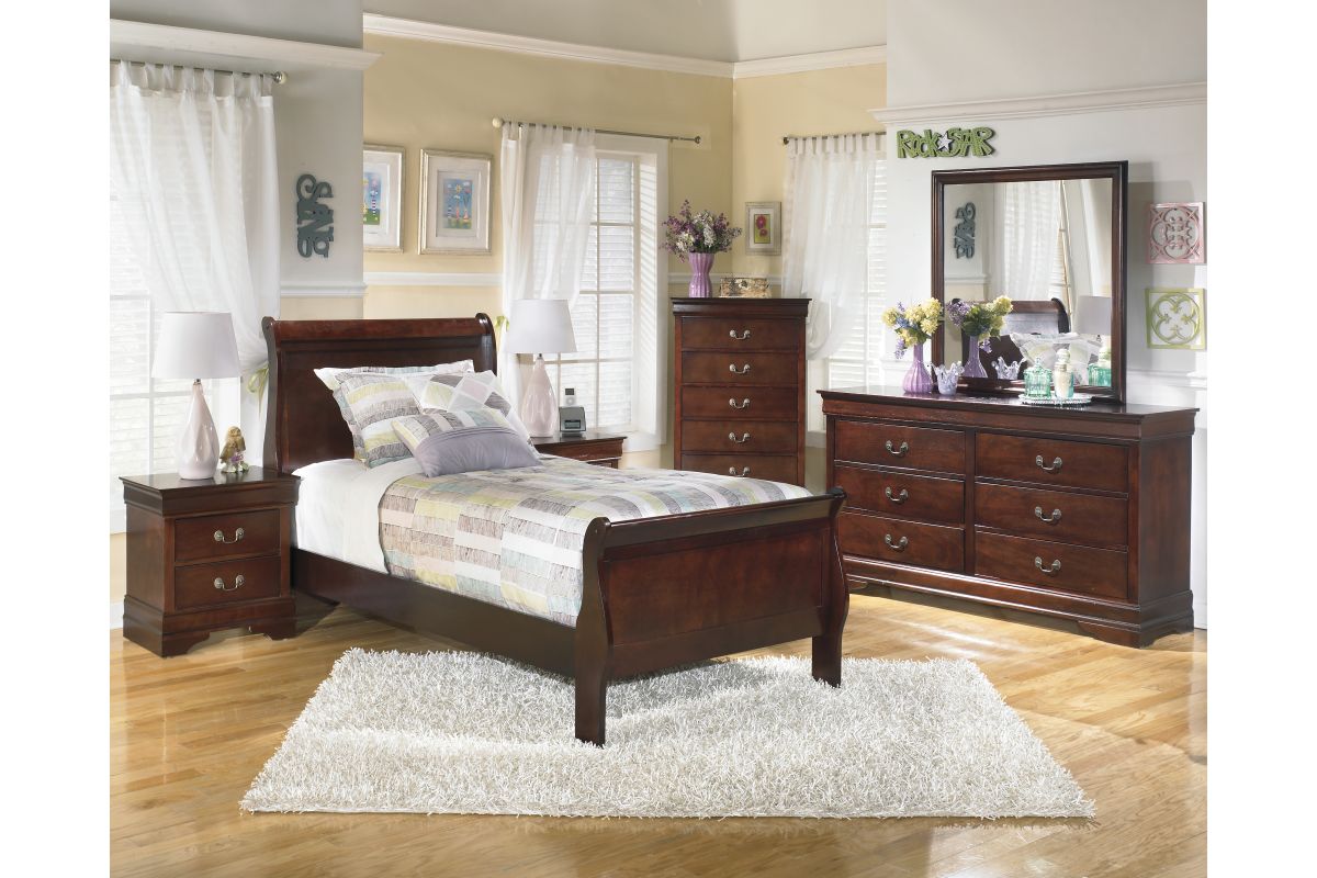This twin sleigh bed is the epitome of traditional decor. Its Louis Philippe-style moulding dates back to the mid-19th century, when furnishings were lavish yet somewhat simple. A deep finish brings warmth and elegance into the space. Mattress and foundation/box spring sold separately.