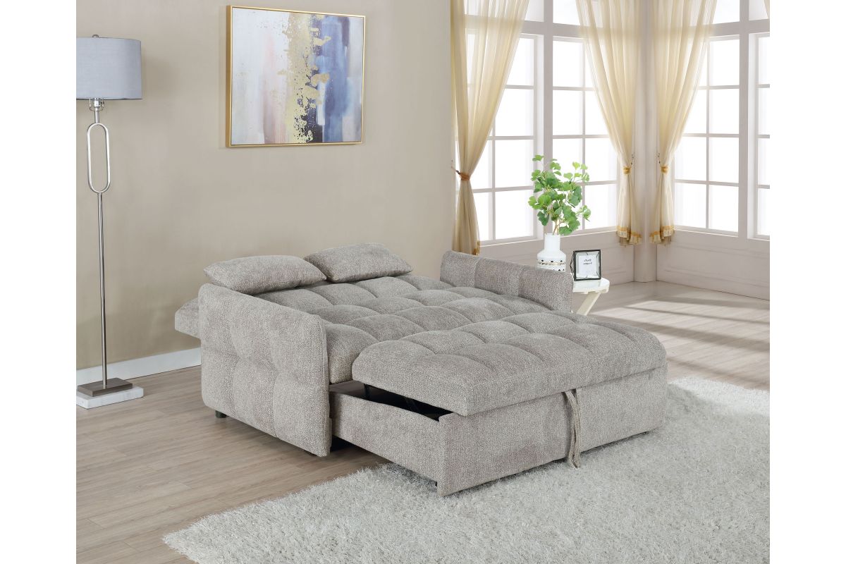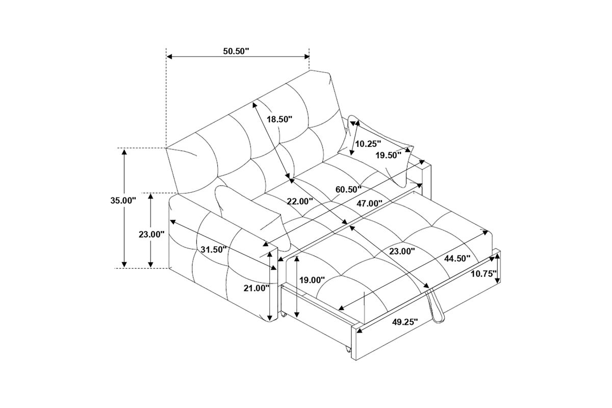 - Pull-out sleeper mechanism extends the seat into a comfortable guest bed