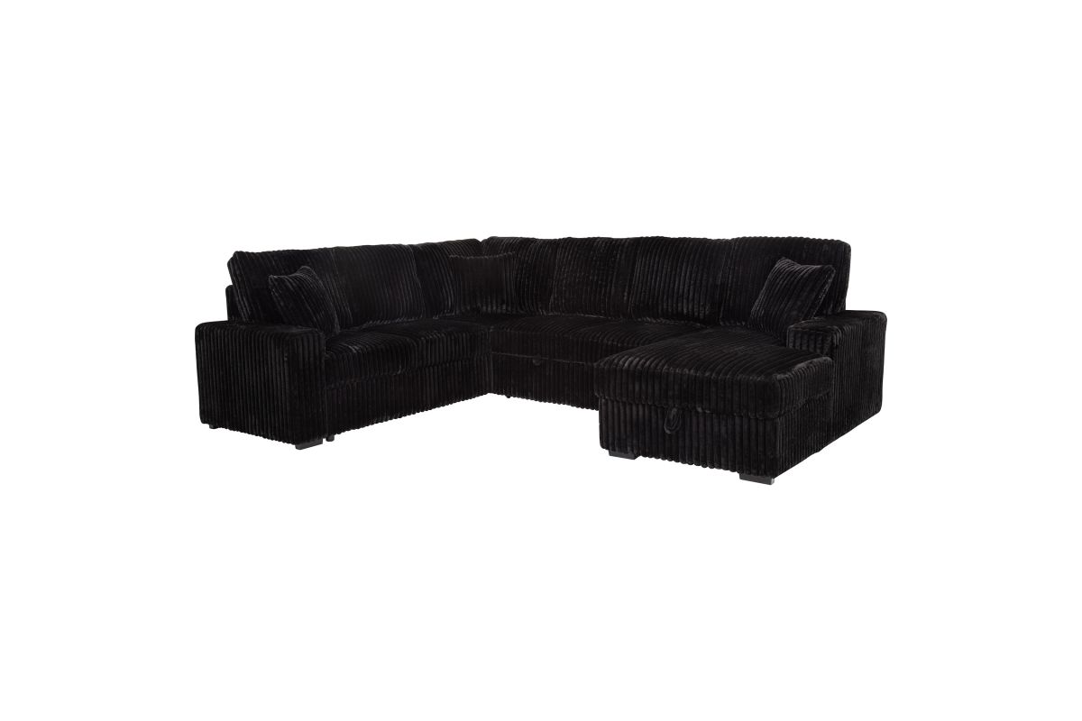 This versatile corduroy sleeper sectional effortlessly converts from cozy seating to a comfortable guest bed with its pop-up sleep surface. A spacious storage chaise keeps essentials at hand, while plush upholstery and three matching pillows provide lasting comfort and style. Its neutral tone complements any décor, making this piece an ideal centerpiece for relaxation, entertainment, and accommodating overnight guests. Built for durability, it seamlessly blends form, function, and modern appeal.