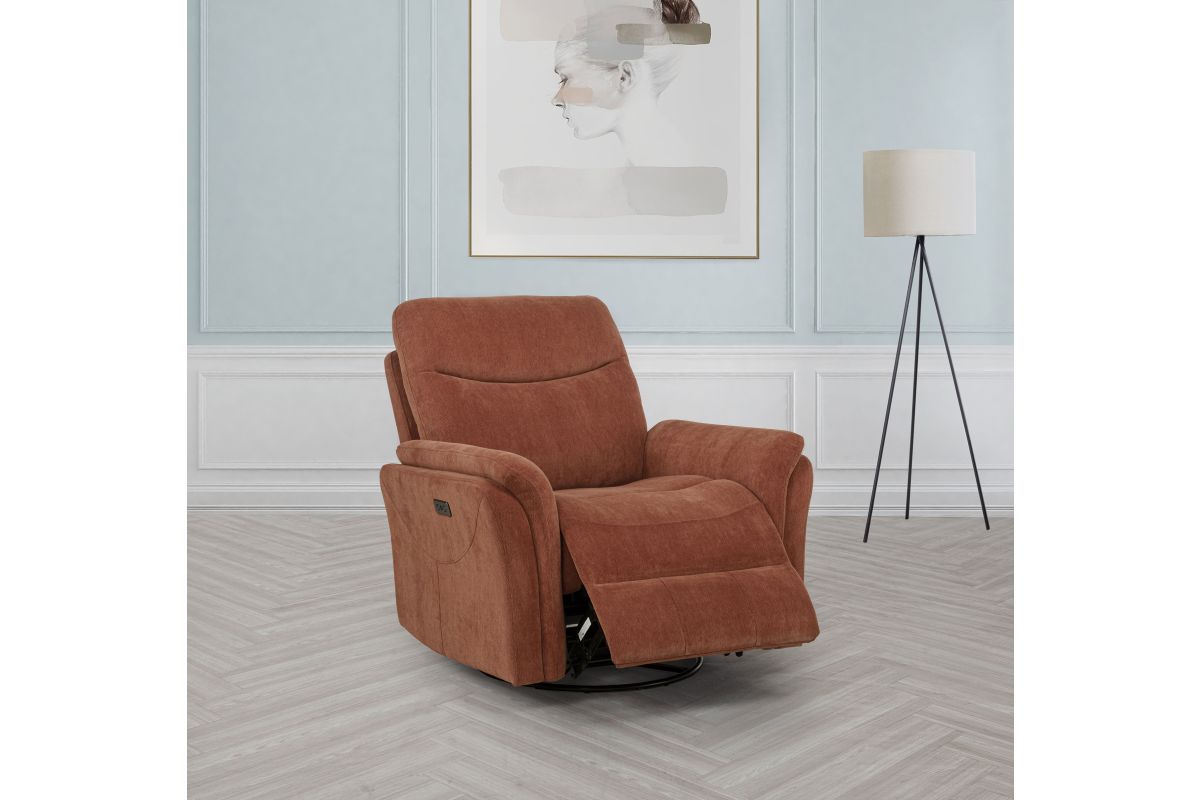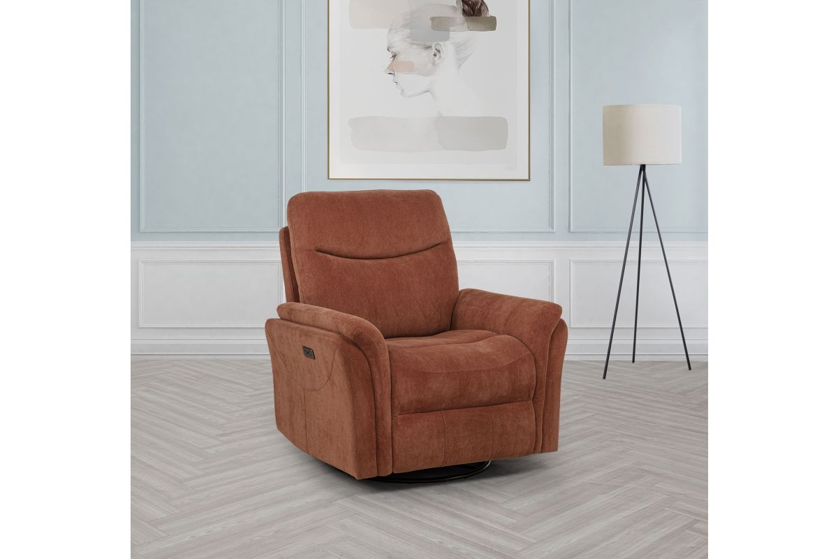 - Swivel glider recliner features power recline for effortless, adjustable comfort