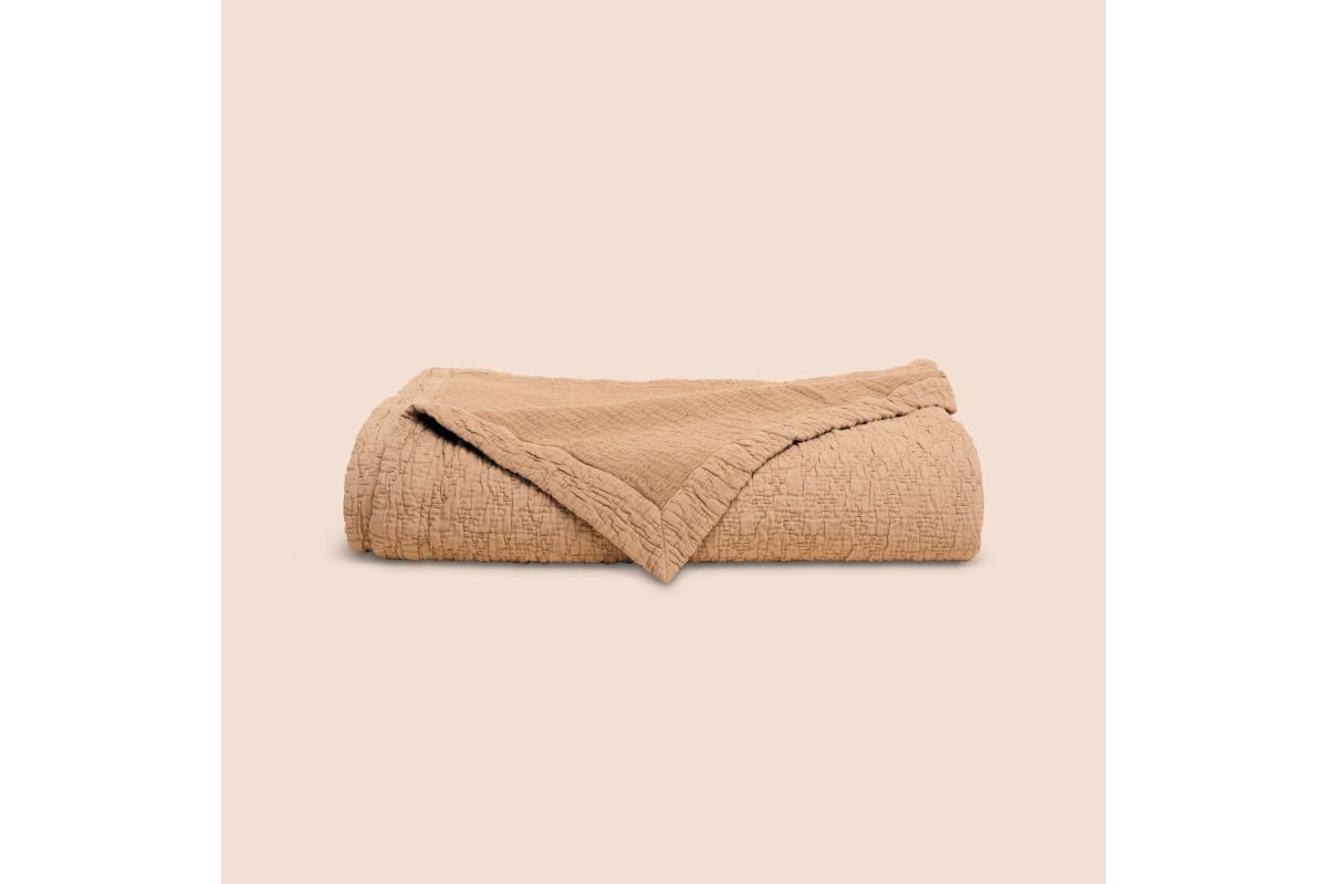 A warm palette and subtle texture come together in Purecare's breathable cotton coverlet inspired by The Wave in the Southwest United States. Organically tinted from EarthColors® dyes and finished with a relaxed yet playful wavy pattern, each coverlet inspires a handmade look and feel, offering the perfect finishing touch to your sleep space.