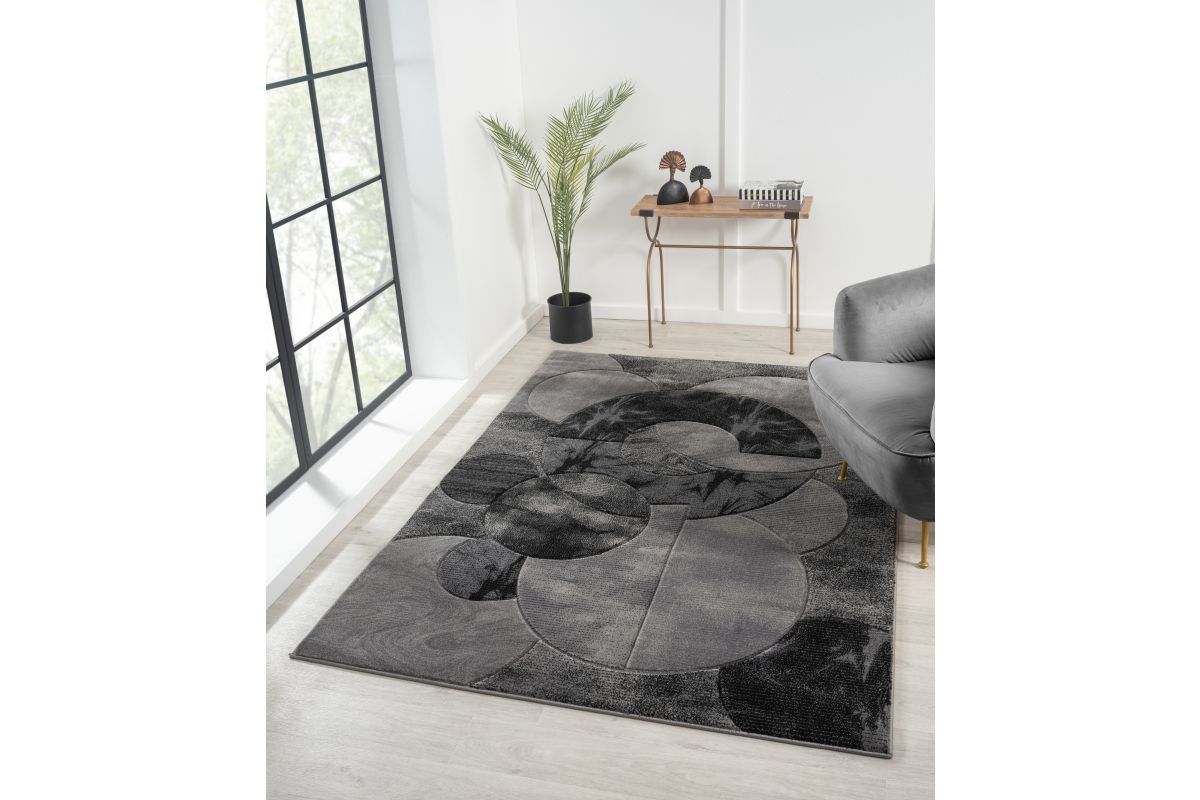 Transform your space with the striking modern designs of the Alexia Collection. Each rug features bold geometric patterns, layered textures, and a rich palette of Brown, Grey, Light Brown, Blue, and Black. This rug is perfect for contemporary, transitional, or minimalist interiors.