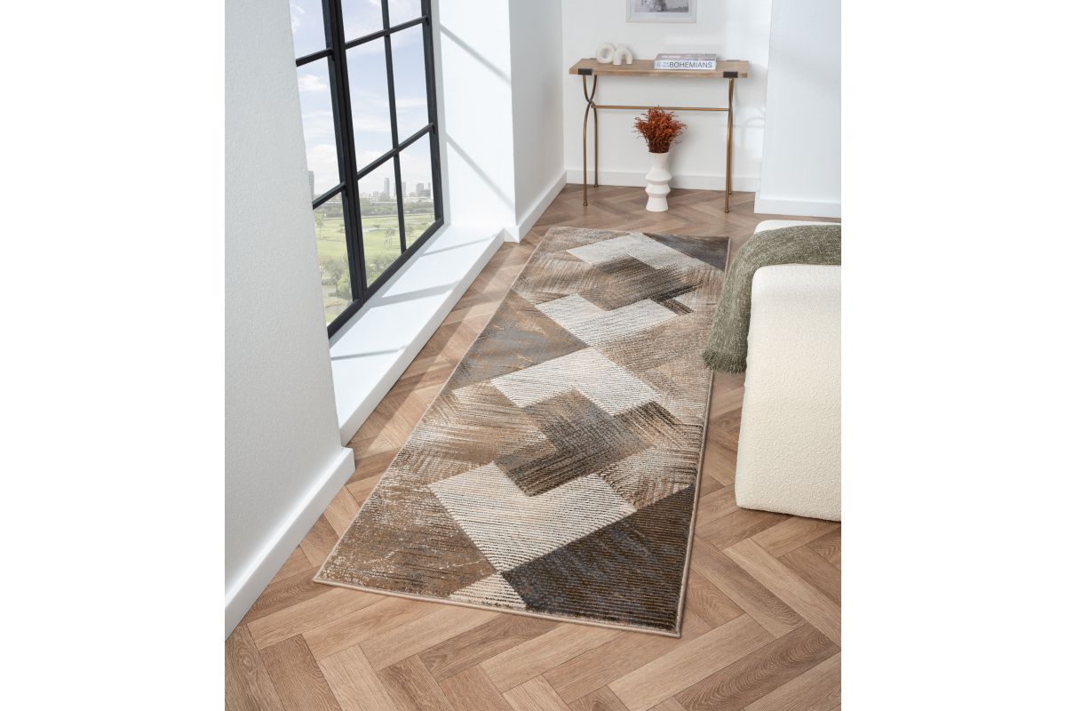 Transform your space with the striking modern designs of the Alexia Collection. Each rug features bold geometric patterns, layered textures, and a rich palette of Brown, Grey, Light Brown, Blue, and Black. This rug is perfect for contemporary, transitional, or minimalist interiors.