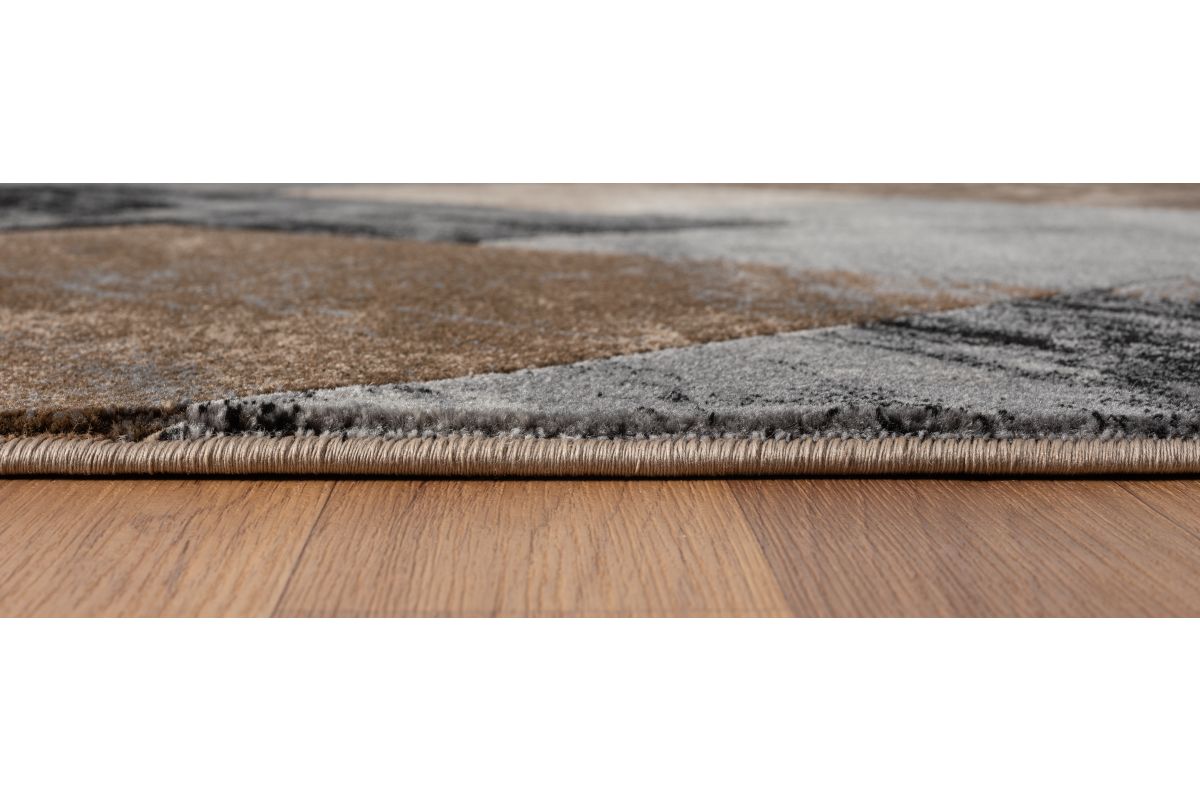 Transform your space with the striking modern designs of the Alexia Collection. Each rug features bold geometric patterns, layered textures, and a rich palette of Brown, Grey, Light Brown, Blue, and Black. This rug is perfect for contemporary, transitional, or minimalist interiors.