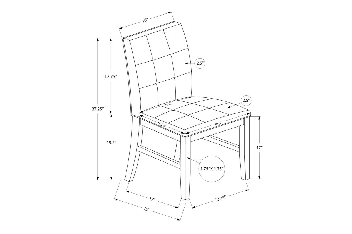 - This set of 2, beautifully crafted 37" high, solid back dining chairs has tufted upholstery in a brown fabric over thick foam cushioning, supported on a grey solid wood frame.