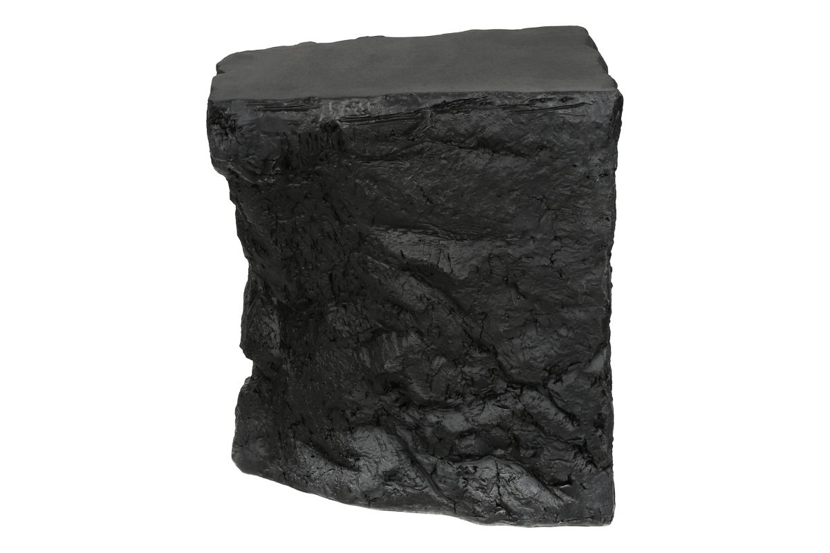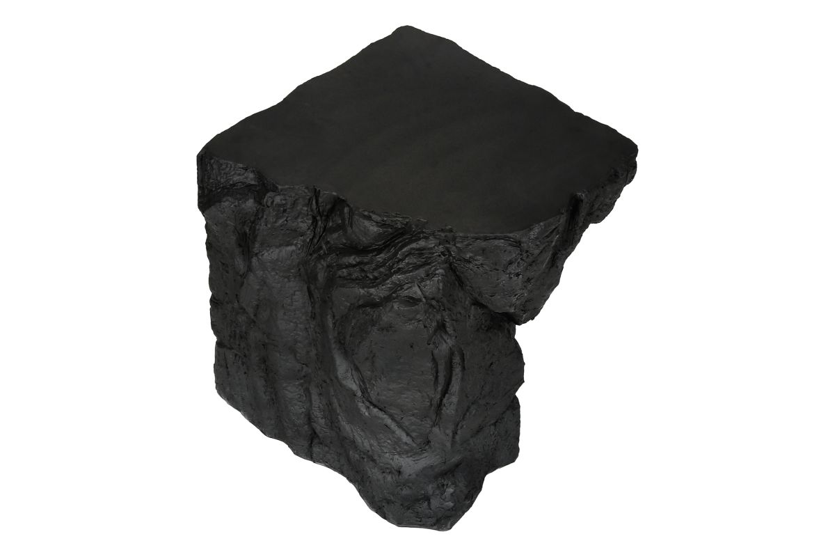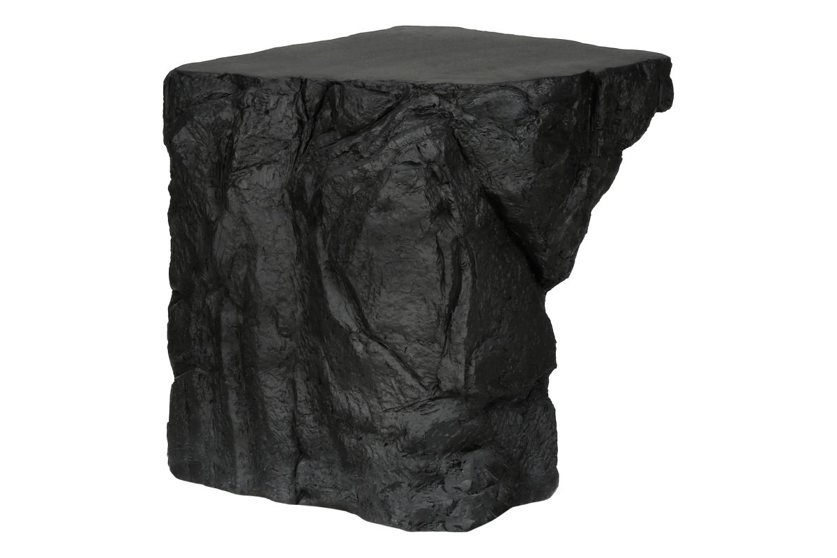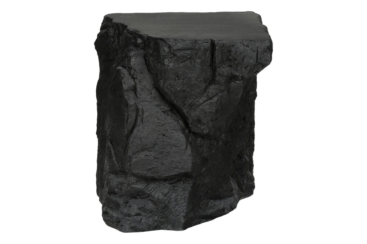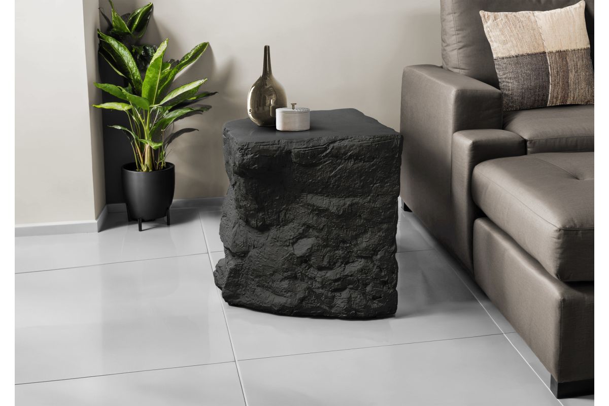 - A modern 25 h accent table in a chic black finish imitating a natural rock design, seamlessly complements any space to serve as a unique end table in your living room, a side table on your patio, or as a nightstand in your bedroom.