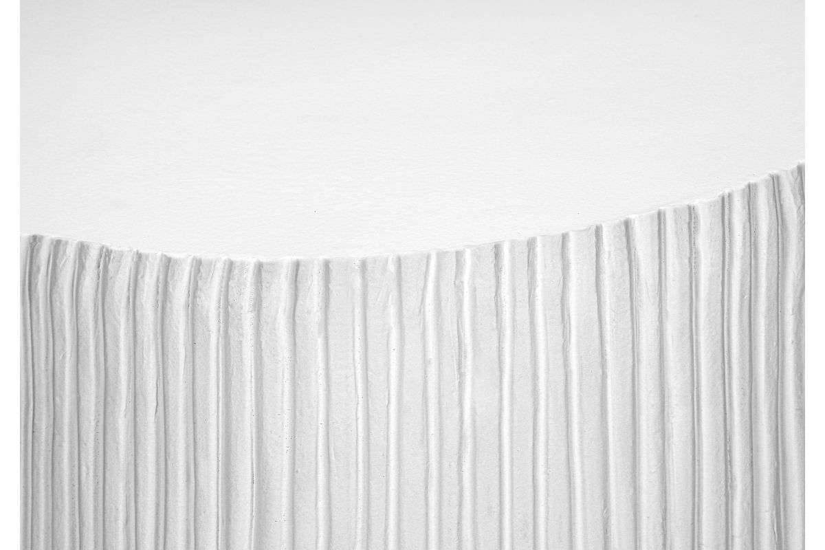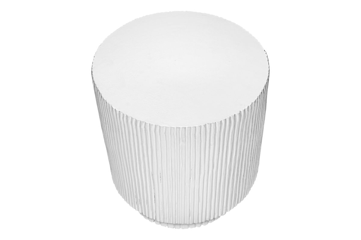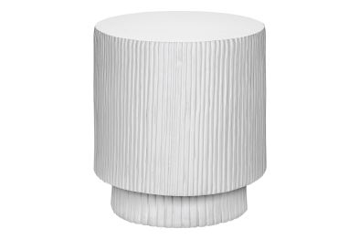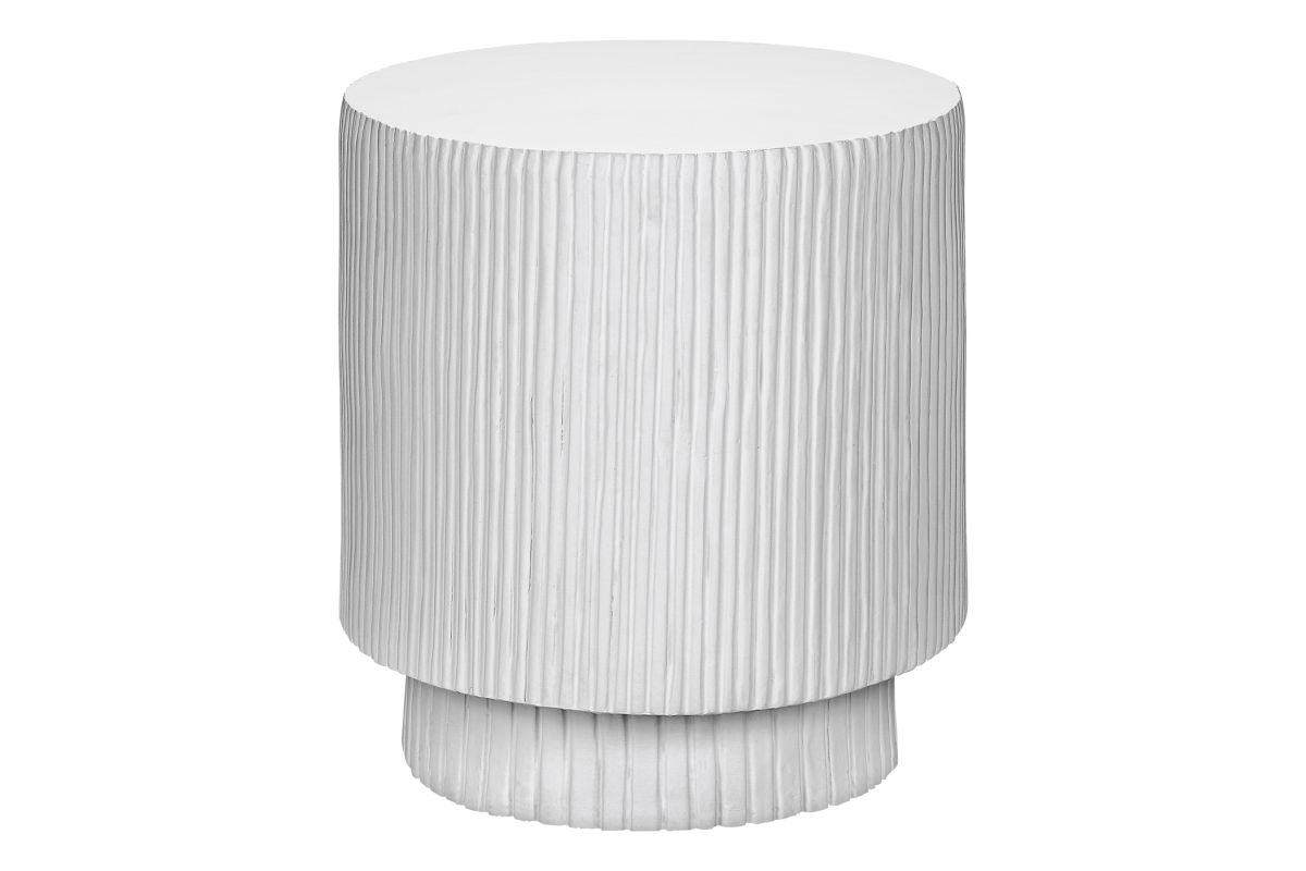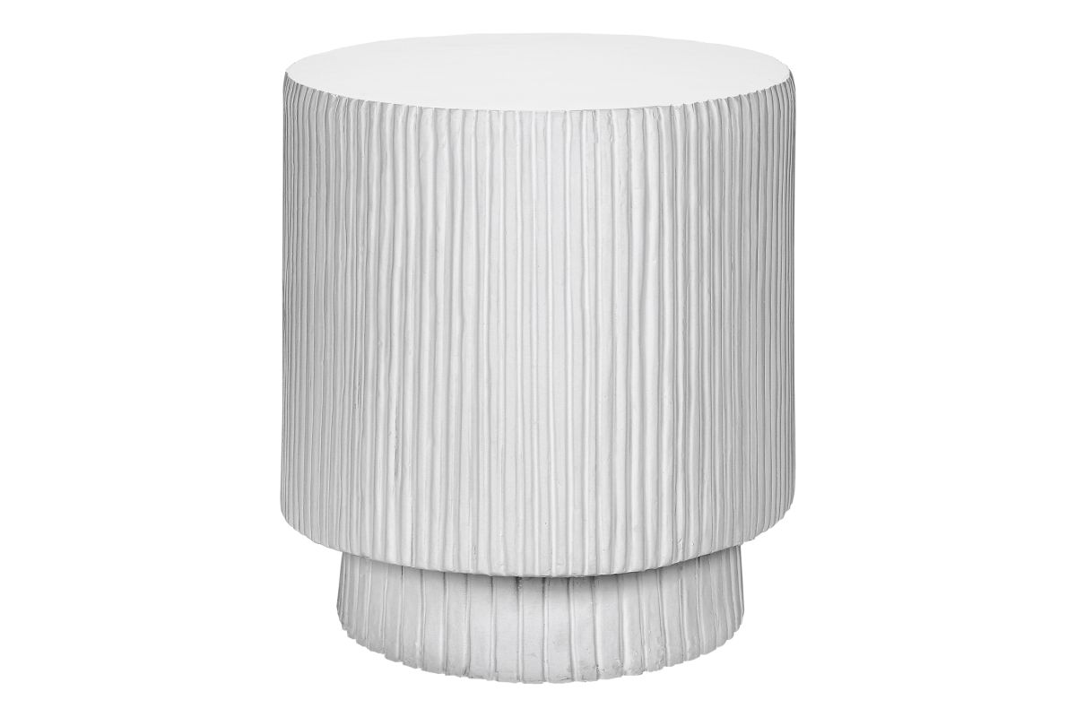 - This 25"h indoor or outdoor accent table in a chic white finish boasts a contemporary ridged design, perfectly uplifting your living room, bedroom, or patio space with modern elegance.
