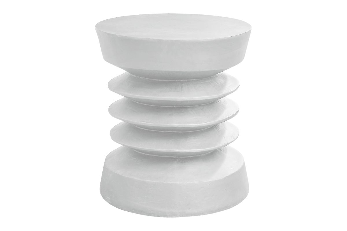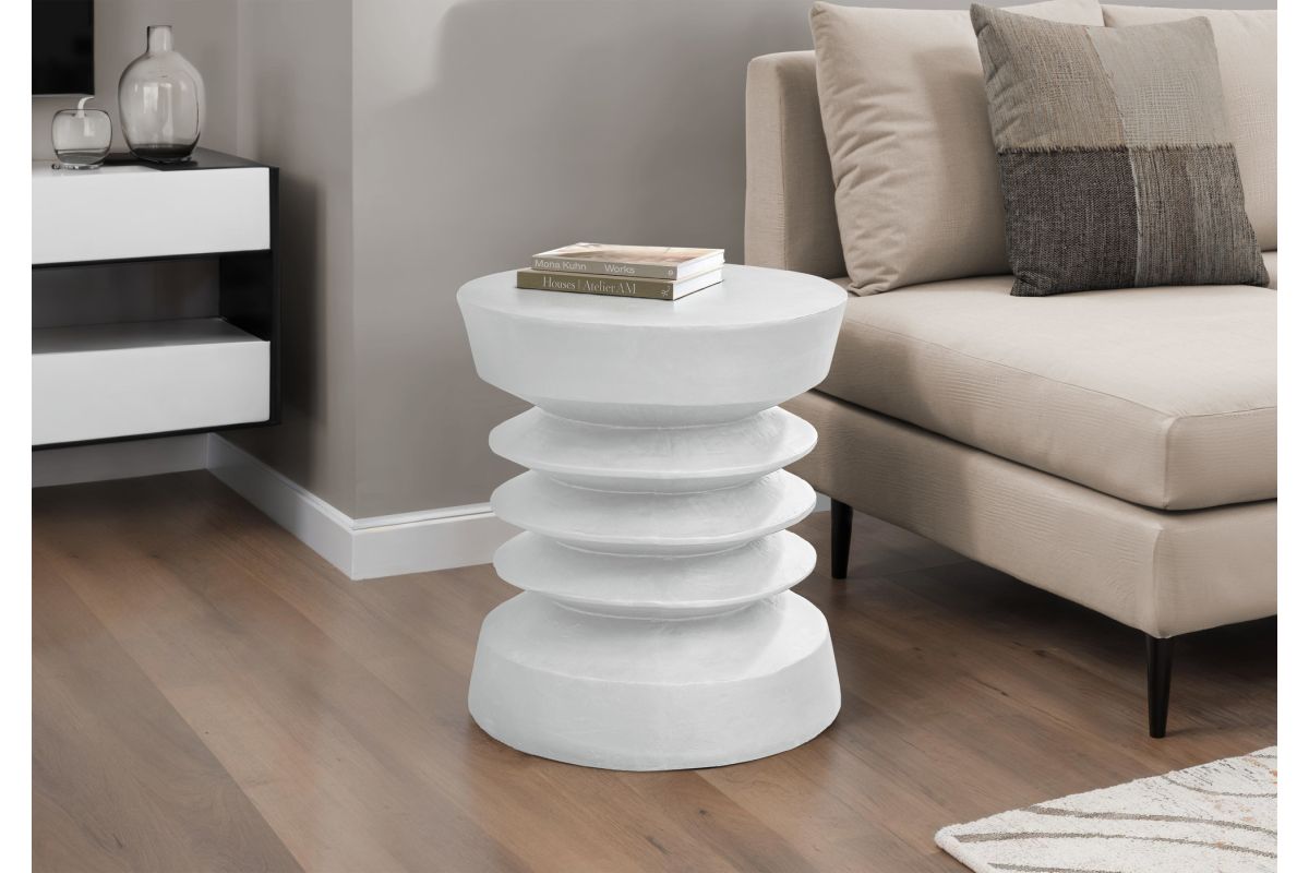 - Made for both aesthetic appeal and practical use, this white accent table is durably designed with weather-resistant magnesium oxide construction that withstands daily use in all settings.