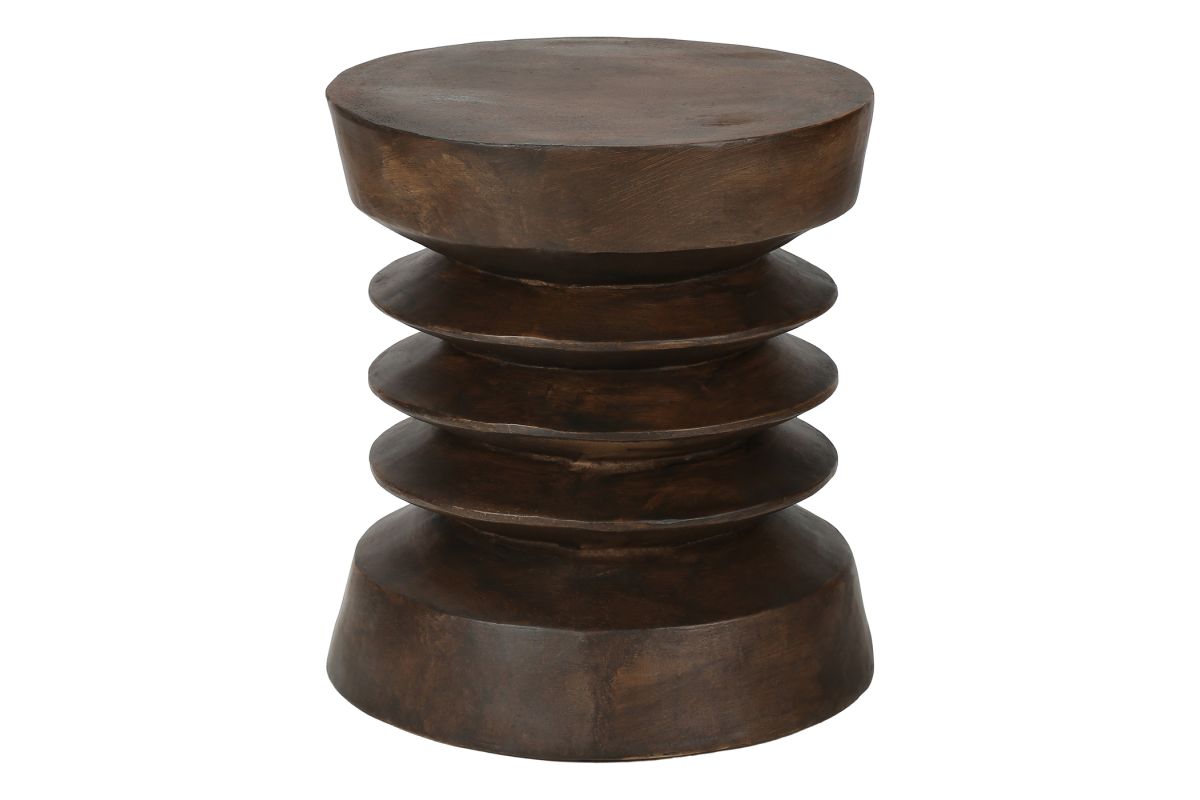 - Made for both aesthetic appeal and practical use, this textured, walnut accent table is durably designed with weather-resistant magnesium oxide construction that withstands daily use in all settings.