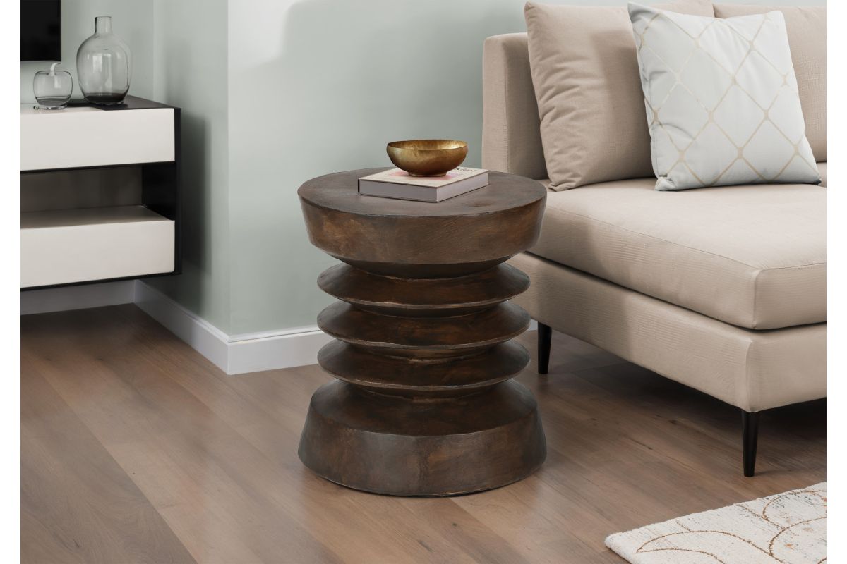 Unleash the full potential of your living area with our stunning 25"h accent table, masterfully crafted for the trendiest customers seeking a blend of style and functionality. This contemporary and chic indoor or outdoor table seamlessly fits into modern aesthetics, making it a perfect addition to your living room, bedroom, or patio. Crafted to adapt, this walnut side table in a textured, circular coil-like design with a solid pedestal base is created from weather-resistant magnesium oxide for all conditions, bringing a fashionable style to any setting. The space saving design gives it versatility whether placed as an end table next to your sofa, as a nightstand near a bed, or as a side table on your modern porch or patio. The resilient, easy to clean top for those little spills provides hassle-free maintenance whether entertaining indoors or out. No assembly is needed for this durably designed, round accent table that includes a 5 year limited warranty against manufacturer defects, ensuring quality and long-lasting presence in your home. Redefine your indoor and outdoor space effortlessly, with this practical and fashionable decorative table.