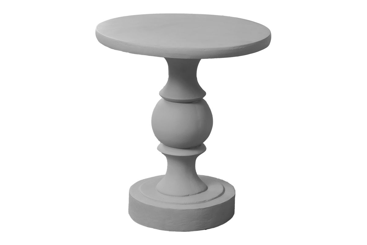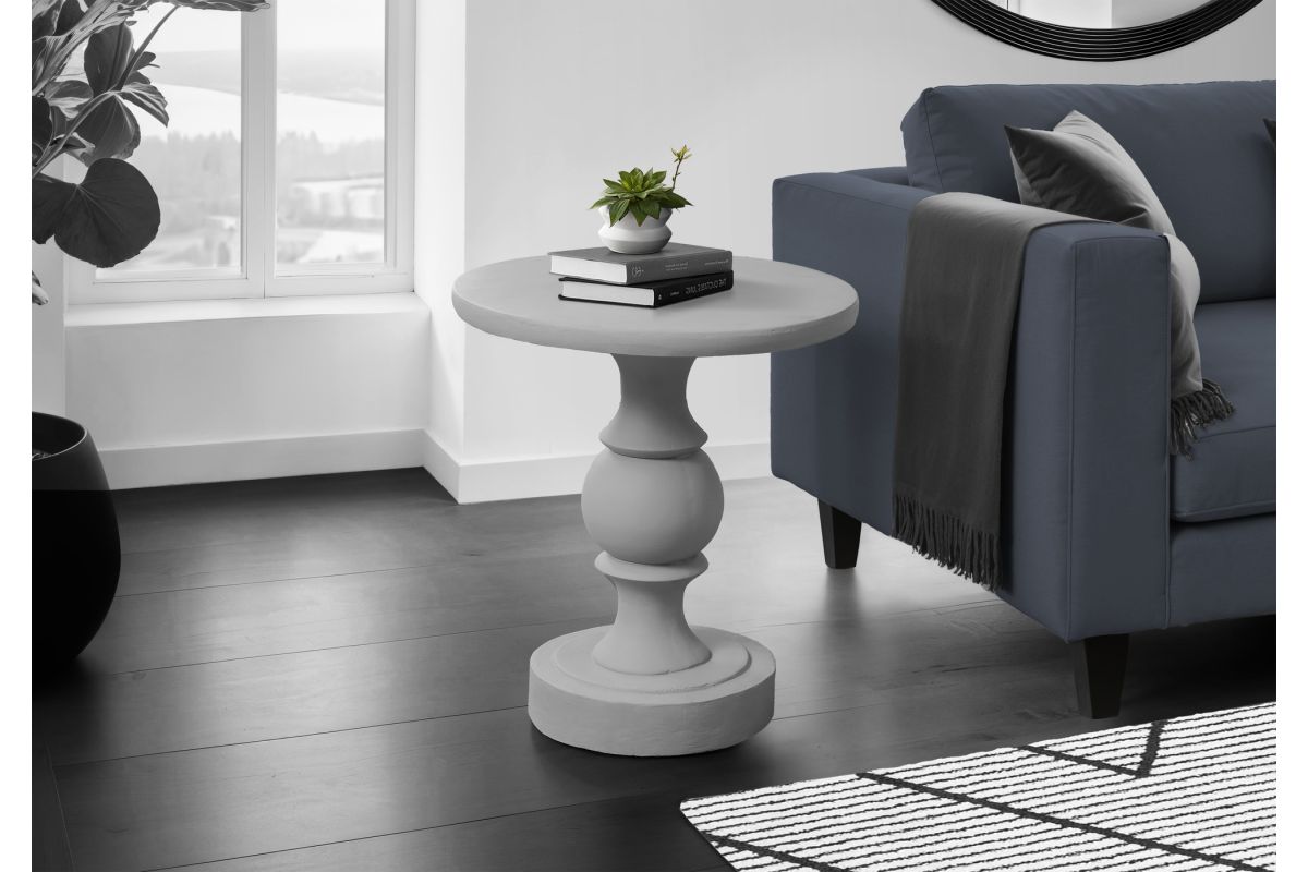Transform your indoor or outdoor space with this classic, pedestal style, grey accent table. A perfect fusion of style and practicality, this robust 25"h round table is durably designed with magnesium oxide for weather-resistance whether used in your transitional style living room, bedroom, or patio space. The easy to clean top makes maintenance a snap whether you need a practical side table for your morning coffee, a fashionable nightstand for your bedtime essentials, or a sophisticated end table that sparks conversation, this versatile piece checks all the boxes. Arriving fully assembled in a space saving design, you can instantly place this table in any setting to enhance your decor. A 5 year limited warranty against manufacturer defects is included for this quality made and reliable indoor/outdoor table. Redefine your space with this fashionable style accent table perfect for those who appreciate both elegance and functionality.