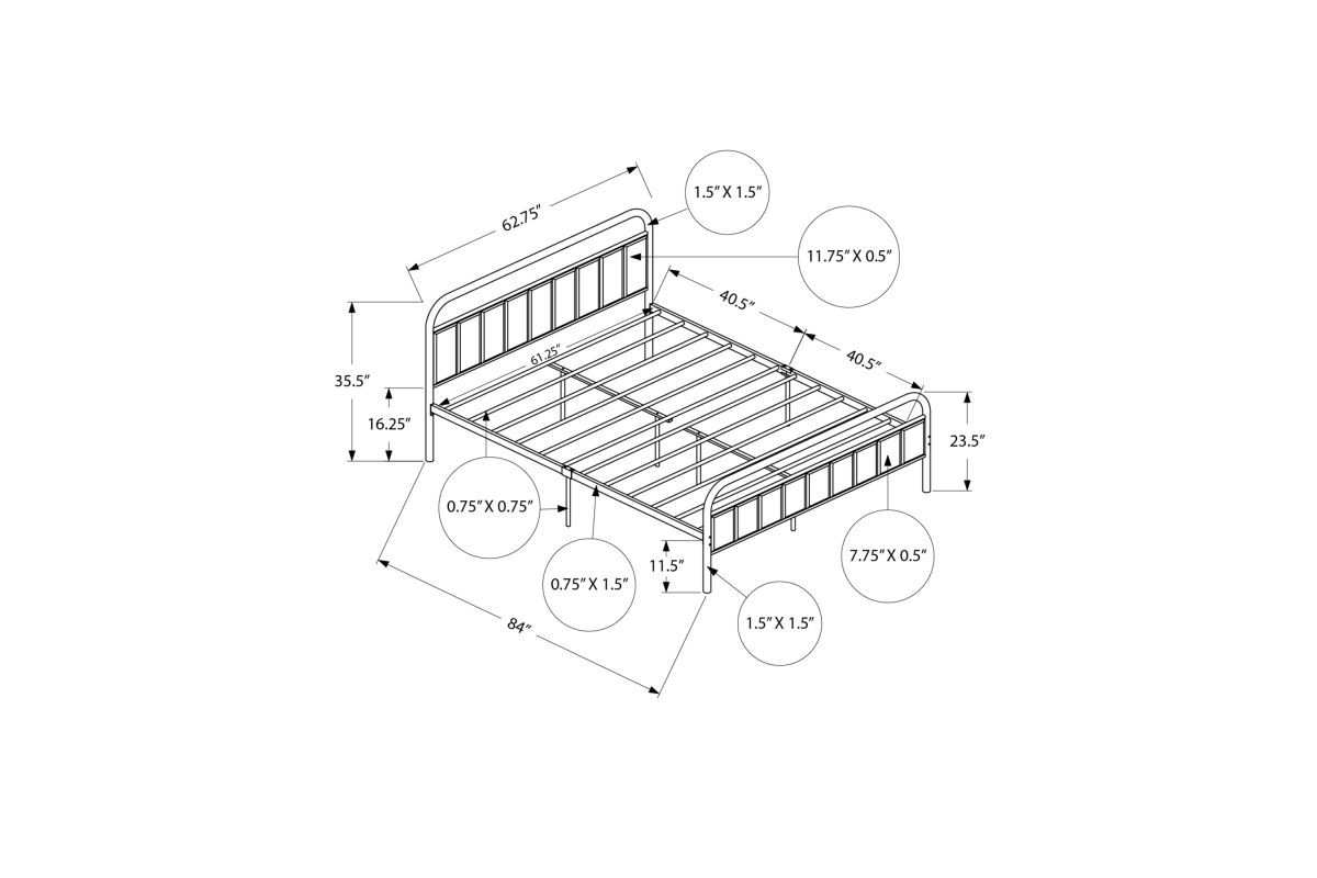 - No box spring is needed, the robust metal bars along the entire base provides comfortable and secure support for a standard queen size mattress (not included).