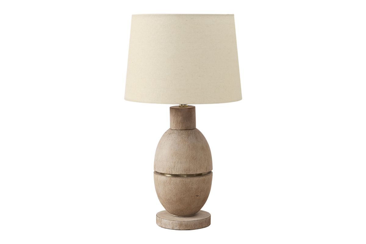 - The classic beige fabric shade softly diffuses the light to help brighten a nightstand, console, end or side table for a warm and inviting ambiance.