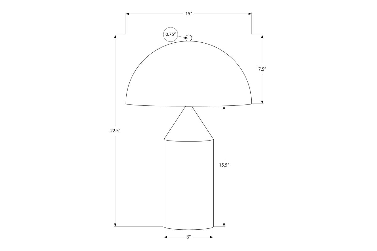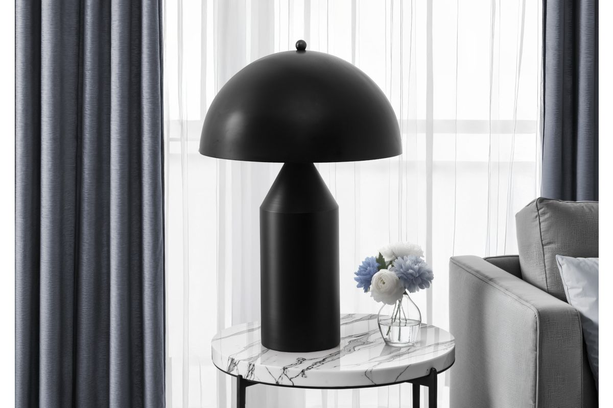 - Rejuvenate your space with this 23"h table lamp, featuring a sleek black metal design topped with a mushroom-shape metal dome shade, that serves as a fashionable and trendy accent piece for any living room, bedroom, or office.