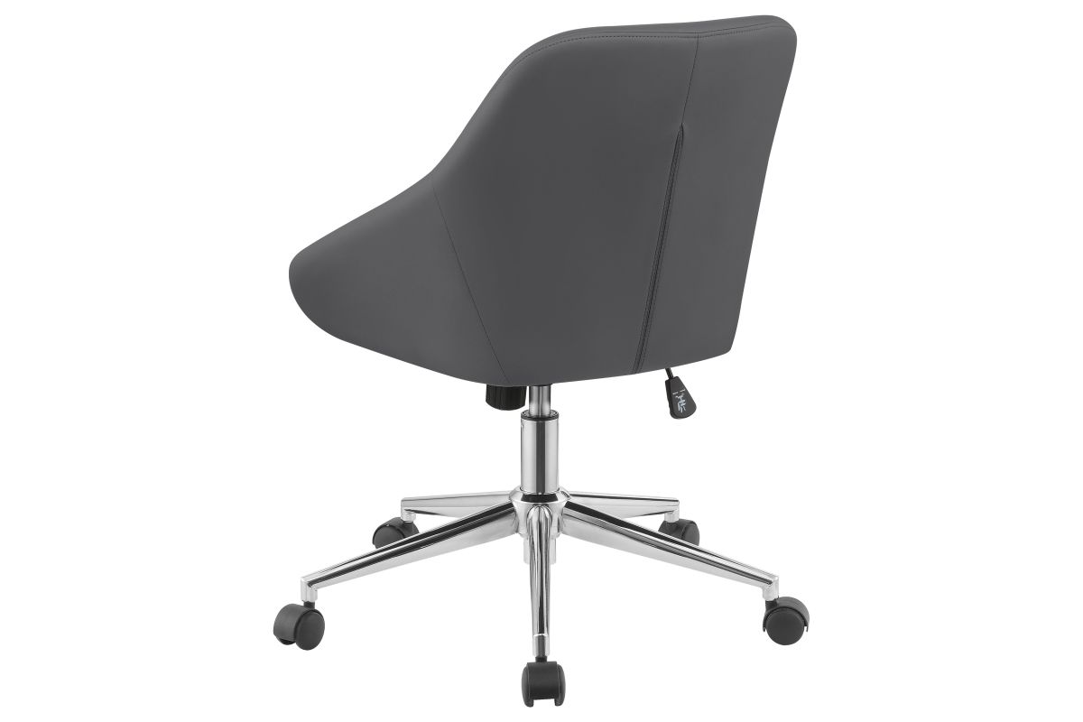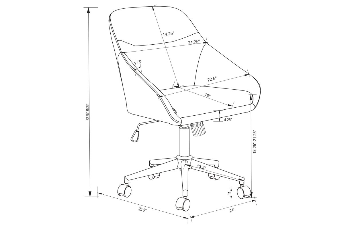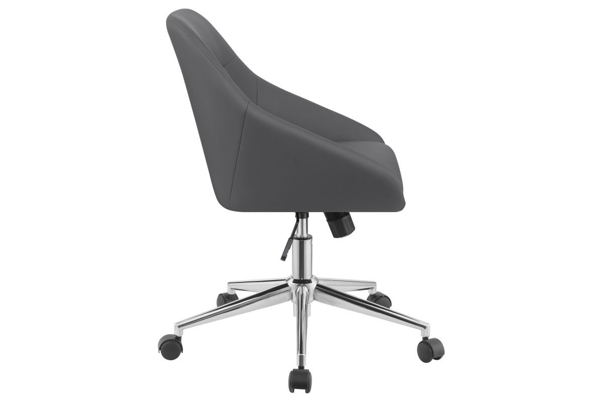 Wrapped in soft and smooth leatherette, this modern office chair features contoured edges for an elegant, contemporary silhouette. Lean against the supportive, comfortable backrest as you focus on work and other tasks. The seating also features a pintuck design and sloped armrests that lend a clean look that is easy on the eyes. Supported by a five-caster wheelbase in a polished chrome finish, this office chair glides across the floor to retrieve office supplies and effortlessly slides beneath a desk at the end of the day. A pneumatic lift also allows you to adjust the height for a more ergonomic seating position.
