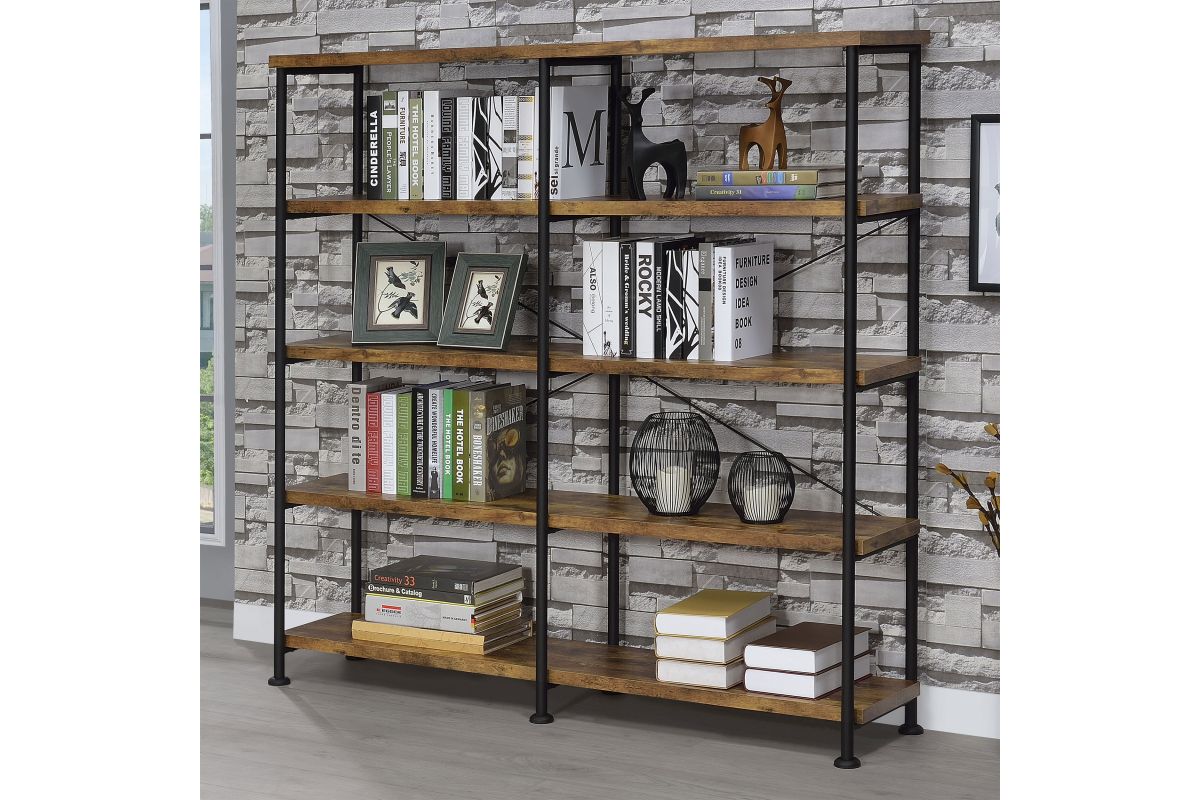 Embrace a traditional look with contemporary upgrades. Choose this bookcase to organize accents and books in a transitional space. Minimalist styling reflects a classic dynamic reflecting a hint of industrial aesthetics. Find plenty of room on four side shelves to display books and decor. Select from finishes that suit your space.