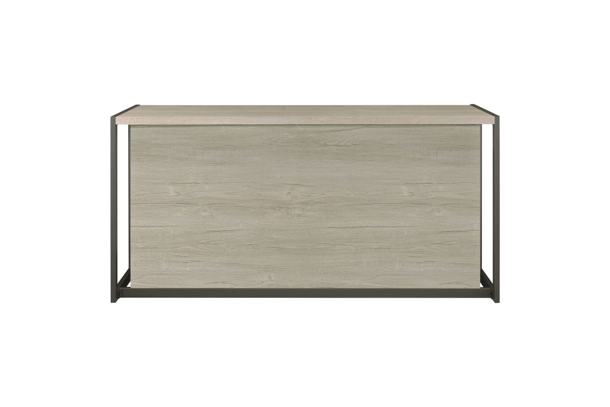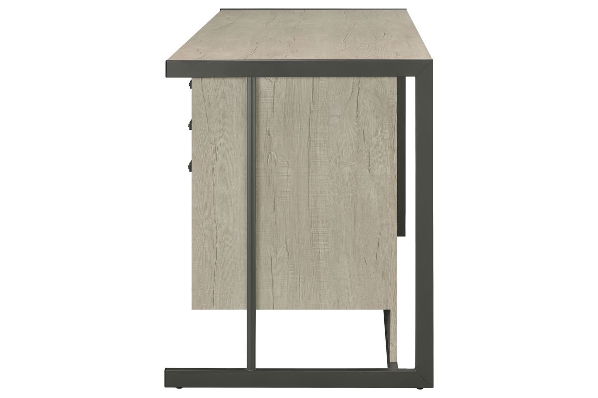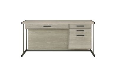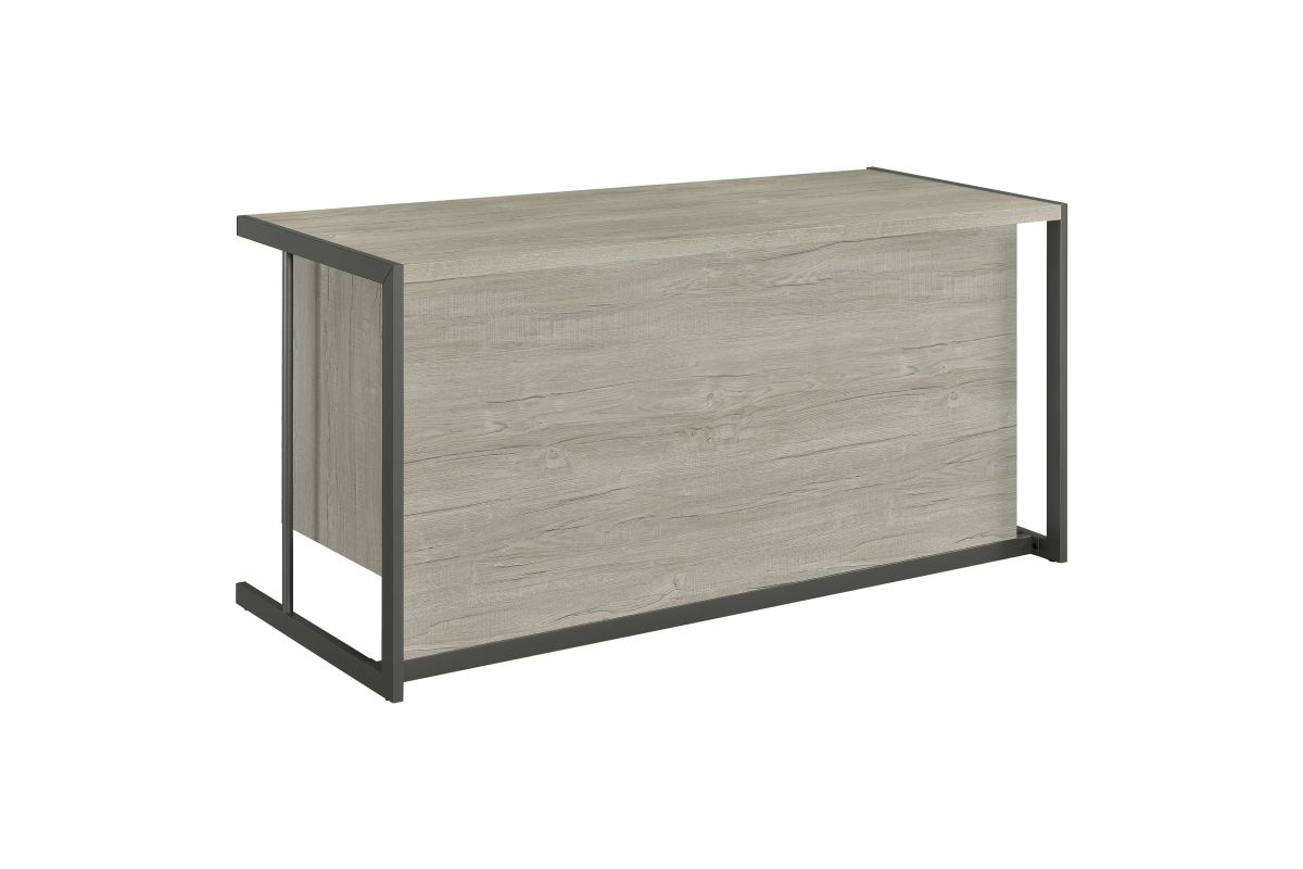 Elevate your contemporary home office and organize your supplies with this spacious contemporary office desk, featuring a light and bright whitewashed grey finish that maintains a clean look and feel to the space. Four drawers, including a deep file drawer, allow you to organize important documents, fastened with gunmetal finished pulls that coordinate with the grey finished sled style base.