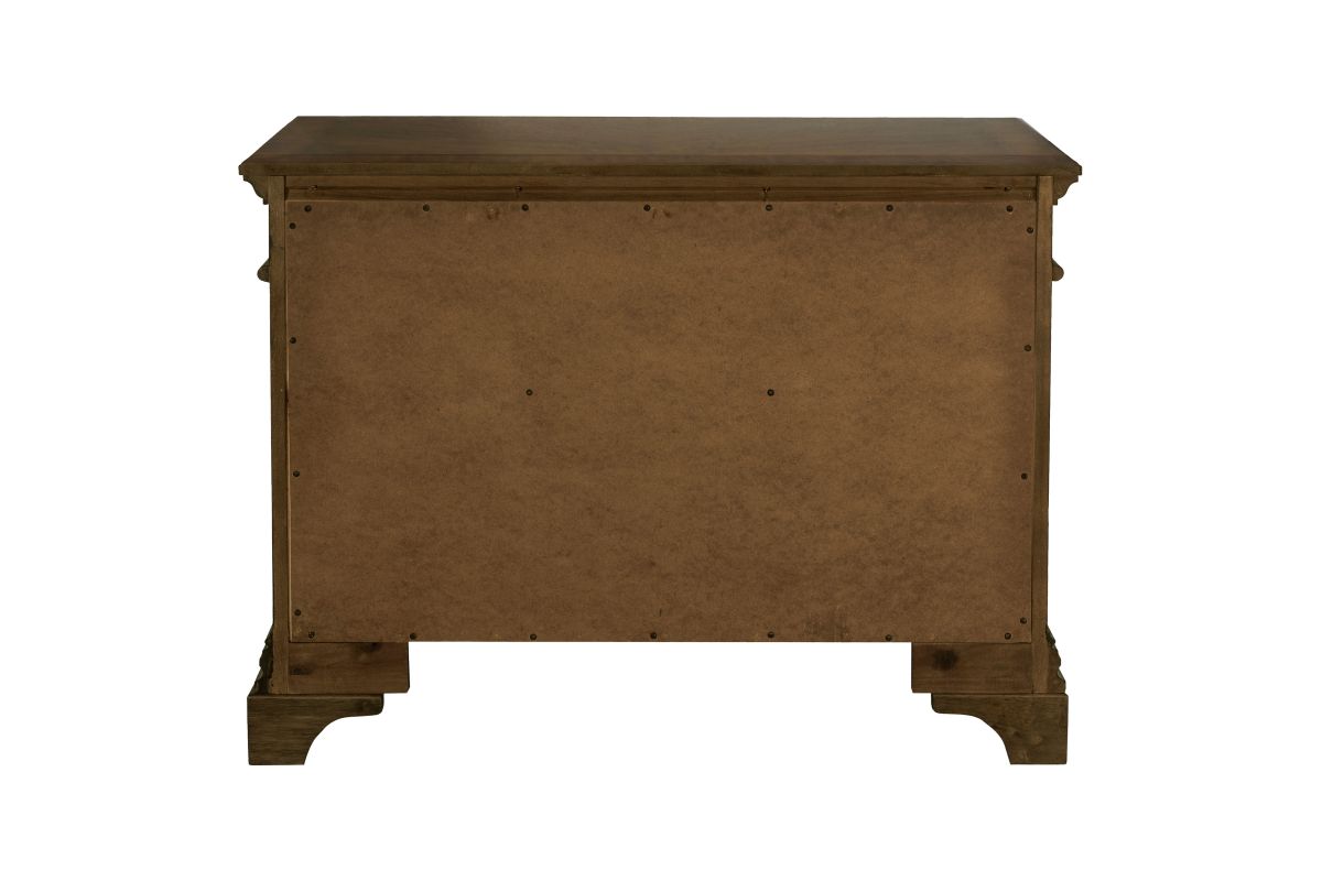 - Bracket feet and carved trim details highlight vintage-inspired craftsmanship
