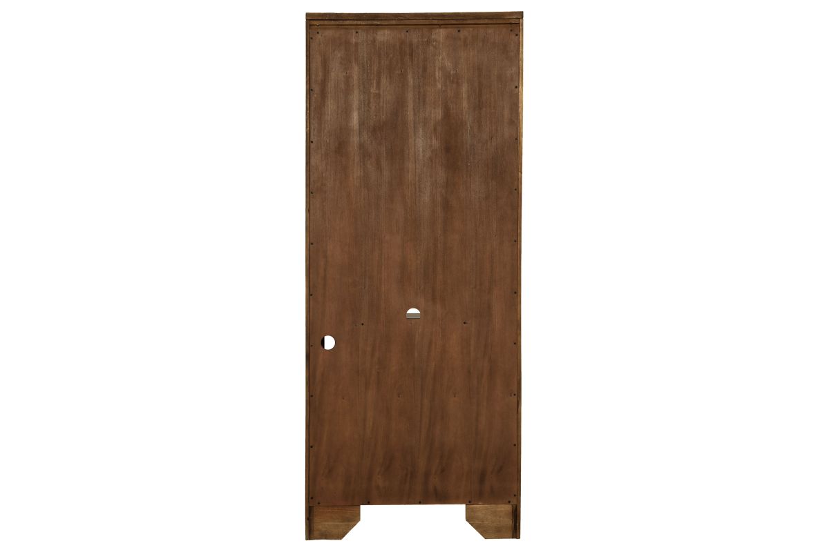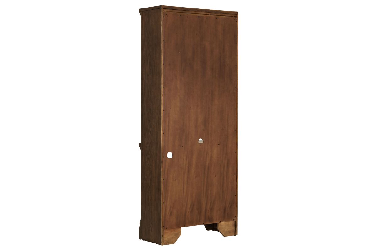 - Top crown molding and arched detail elevate the classic presence of this tall shelf unit