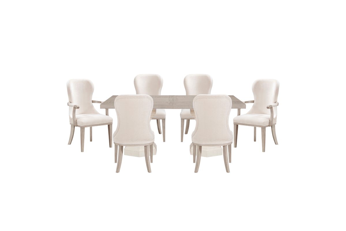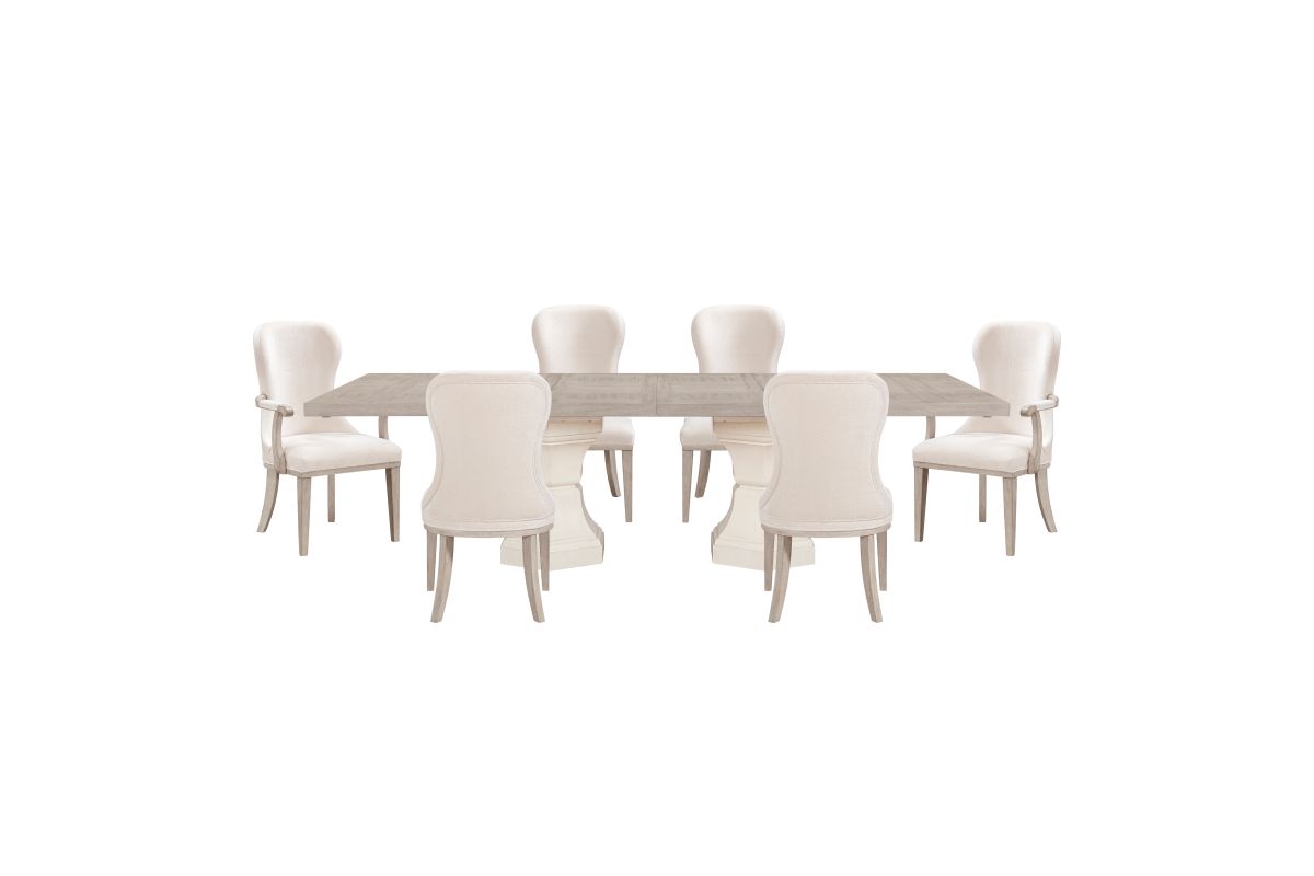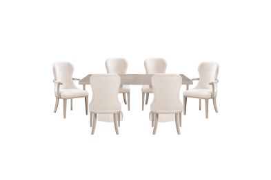 Create a warm and welcoming dining atmosphere with this refined 7-piece dining set. The extendable two-tone table offers generous space for family and friends, while the combination of light gray side chairs and matching armchairs—each featuring plush ivory felt upholstery—adds layered comfort and sophistication. Thoughtfully designed for style and durability, this set enhances both daily meals and memorable gatherings with ease. Assembly required.