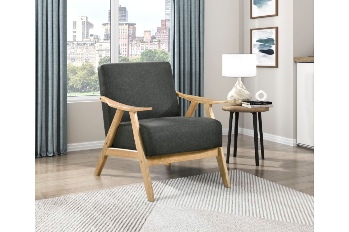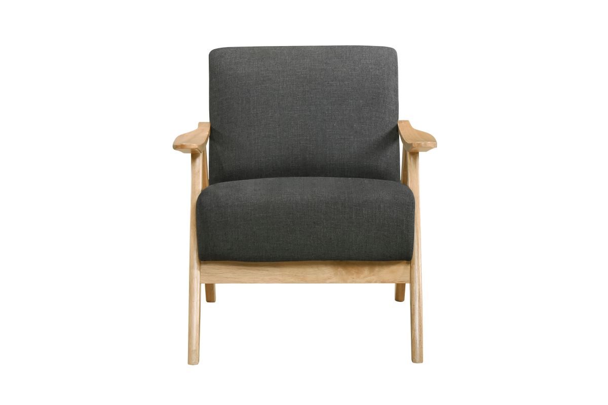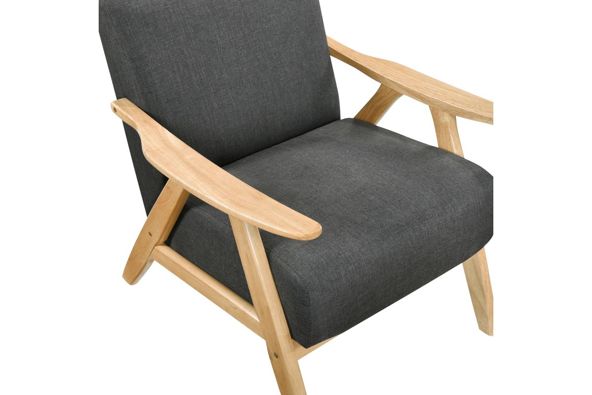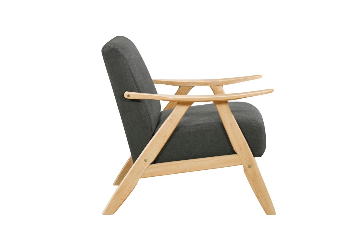 This mid-century modern lounge chair seamlessly blends classic elegance with modern comfort. Designed for both aesthetics and relaxation, this armchair features a solid wood frame with sleek, angled legs and gently curved armrests, providing durability and a stylish retro touch. The plush upholstered seat and back cushions are wrapped in a soft, neutral fabric that complements any décor, from contemporary to Scandinavian to farmhouse styles. Whether you're furnishing a cozy reading nook, adding extra seating to your living room, or upgrading your home office, this accent chair offers the perfect balance of support and comfort. The ergonomic design promotes relaxation, making it an excellent choice for lounging, socializing, or unwinding after a long day.