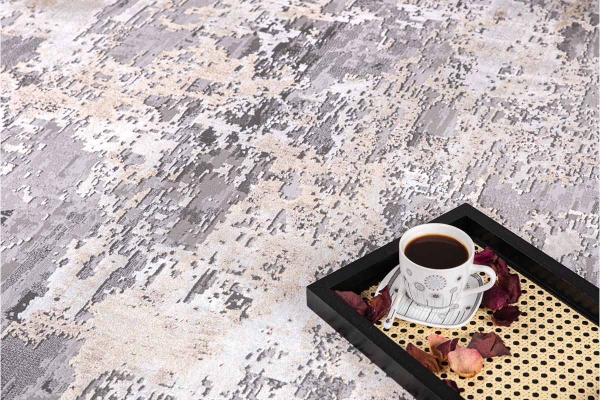 - Contemporary distressed patterns with rich visual texture