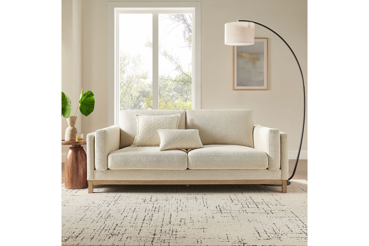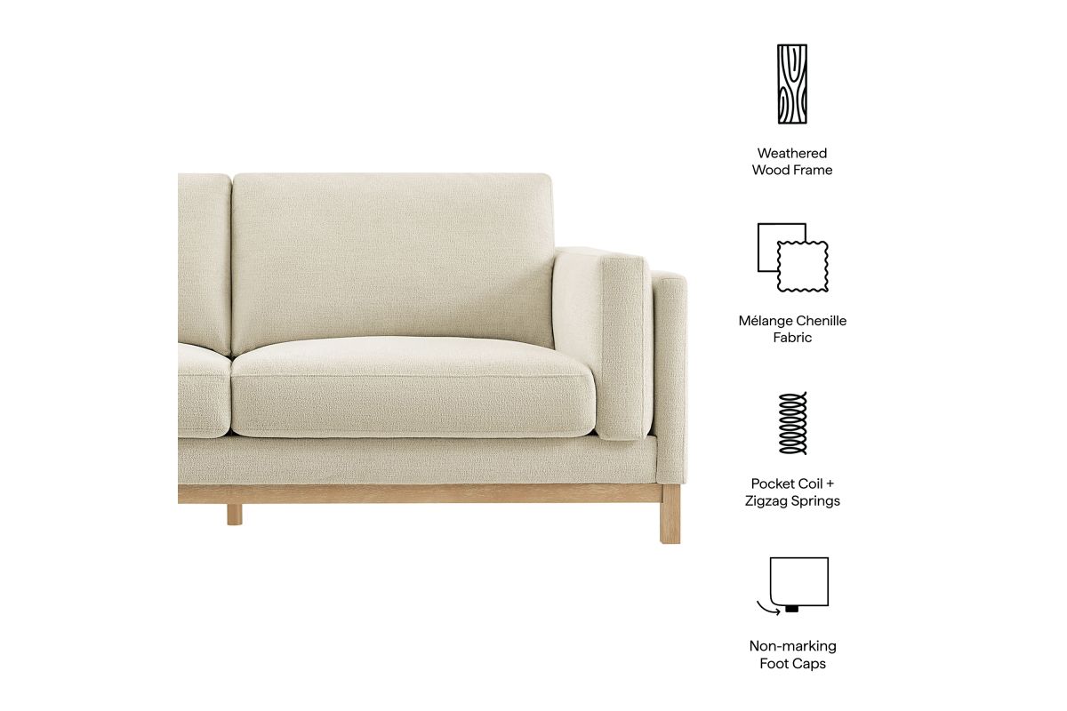 Refined lines and enduring design shape the Roscoe 63-Inch Loveseat, a tailored take on American-traditional style. Upholstered in soft and subtle Mélange Chenille fabric, this cozy loveseat features a deep, generous seat with plush back and seat cushions, made of high resiliency foam, further supported by spring pocket coils and sinuous springs for lasting comfort. The low, streamlined profile sits atop a kiln-dried weathered wood frame with integrated legs and non-marking foot caps for added stability and floor protection. A versatile comfortable loveseat for modern or classic interiors, Roscoe is the ideal deep seat couch—great as an office loveseat, loveseat for bedroom, or couch for small spaces. Weight Capacity: 800 lbs.