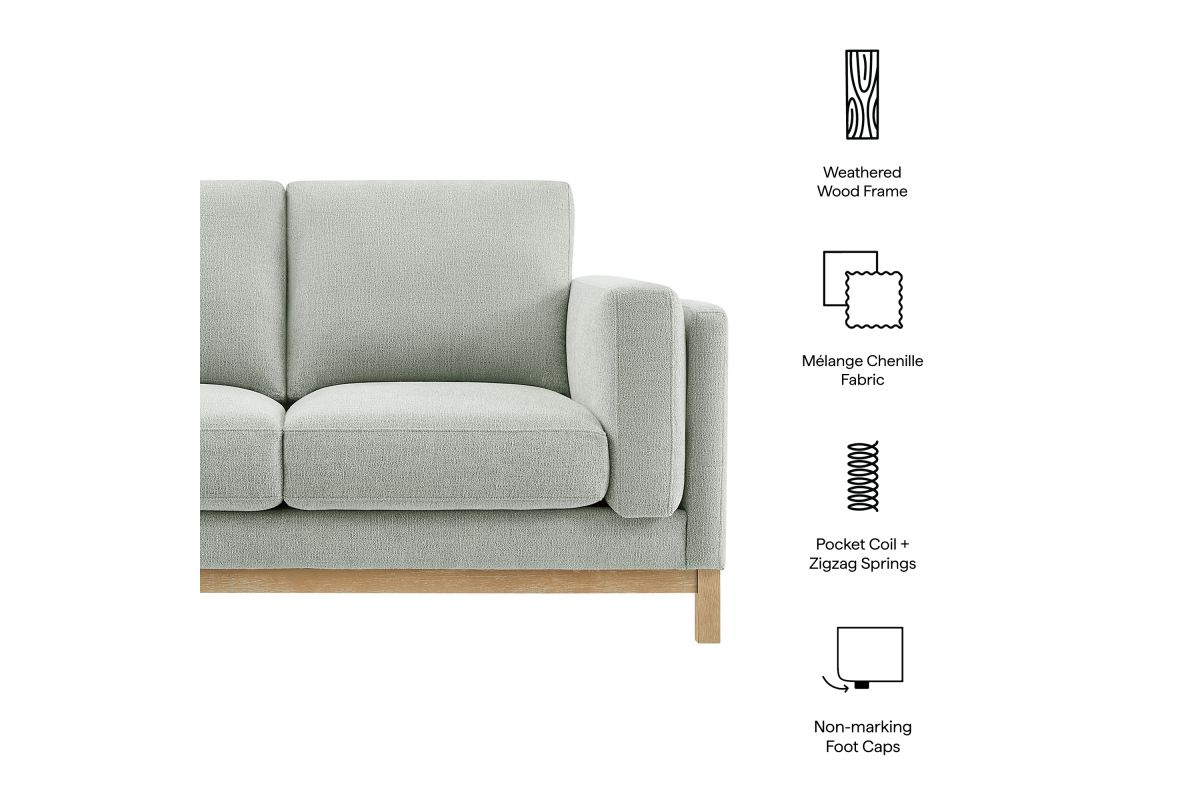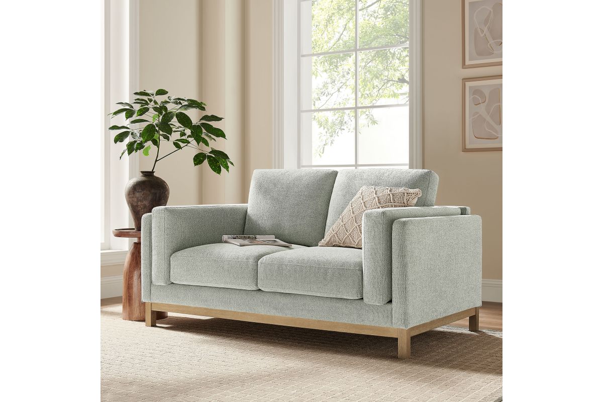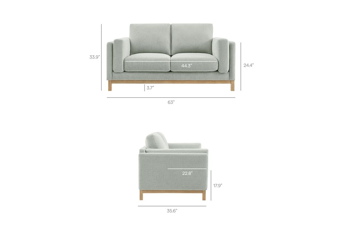 Refined lines and enduring design shape the Roscoe 63-Inch Loveseat, a tailored take on American-traditional style. Upholstered in soft and subtle Mélange Chenille fabric, this cozy loveseat features a deep, generous seat with plush back and seat cushions, made of high resiliency foam, further supported by spring pocket coils and sinuous springs for lasting comfort. The low, streamlined profile sits atop a kiln-dried weathered wood frame with integrated legs and non-marking foot caps for added stability and floor protection. A versatile comfortable loveseat for modern or classic interiors, Roscoe is the ideal deep seat couch—great as an office loveseat, loveseat for bedroom, or couch for small spaces. Weight Capacity: 800 lbs.