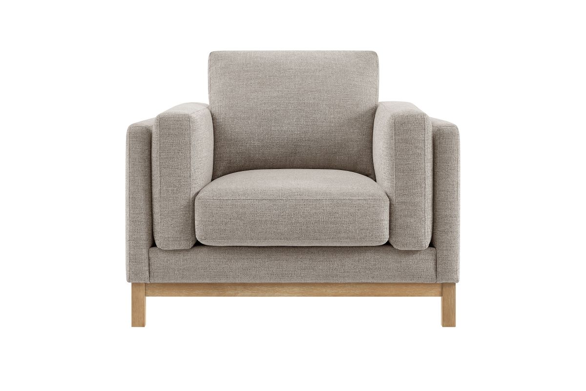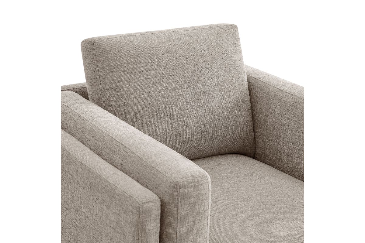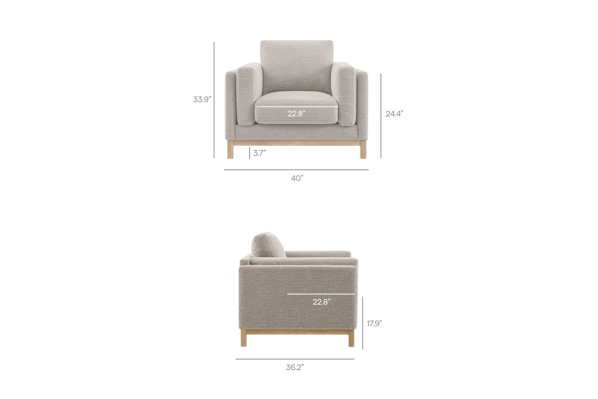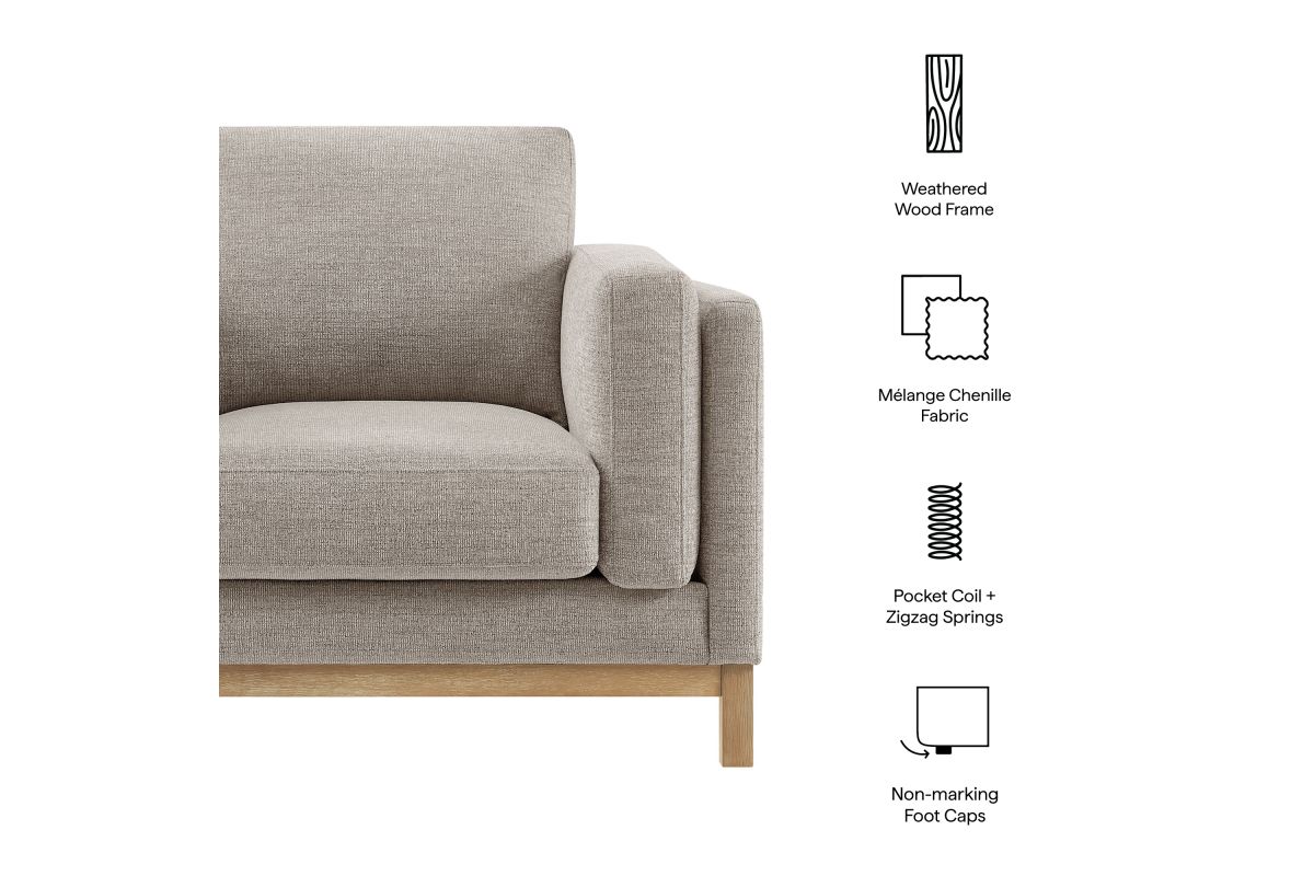 Refined lines and enduring design shape the Roscoe Armchair, a tailored take on American-traditional style. Upholstered in soft and subtle Mélange Chenille fabric, this accent chair with arms features a deep, wide seat with plush back and seat cushions, made of high resiliency foam, further supported by spring pocket coils and sinuous springs for lasting comfort. The low, streamlined profile sits atop a kiln-dried weathered wood frame with integrated legs and non-marking foot caps for added stability and floor protection. A versatile comfortable accent chair for modern or classic interiors, Roscoe is great as a lounge chair for bedroom, corner reading chair, or living room accent chair. Weight Capacity: 800 lbs.