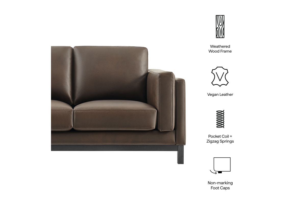 Refined lines and enduring design shape the Roscoe L-shaped Sectional Sofa with Chaise, a tailored take on American-traditional style. This two-piece configuration includes a left-facing chaise and a right-facing sofa, upholstered in smooth vegan leather with a subtle grain and soft, refined finish. Designed with plush seat cushions and spring pocket coil + sinuous spring support, this sectional couch offers deep, sink-in comfort with a grounded silhouette. Featuring high resiliency foam, the low-profile frame sits on a kiln-dried weathered wood base with integrated legs and non-marking foot caps for added stability and floor protection.