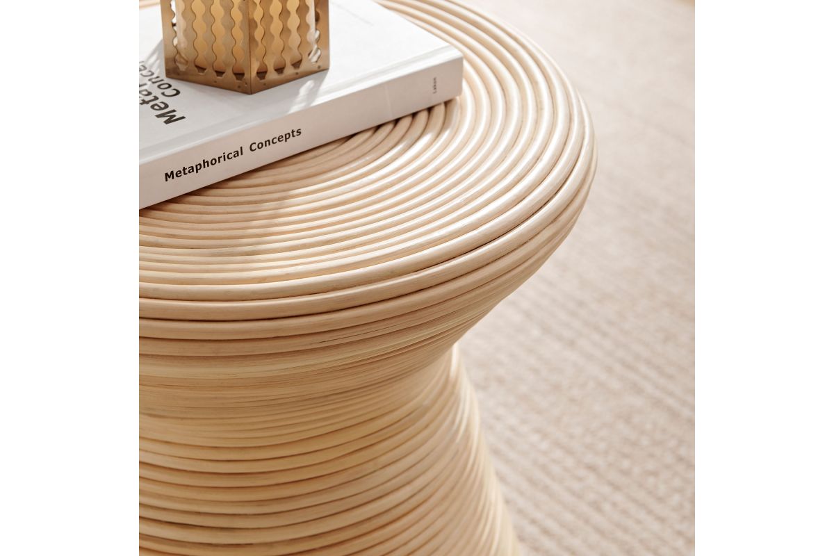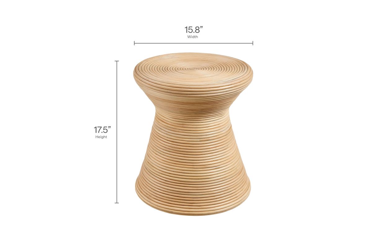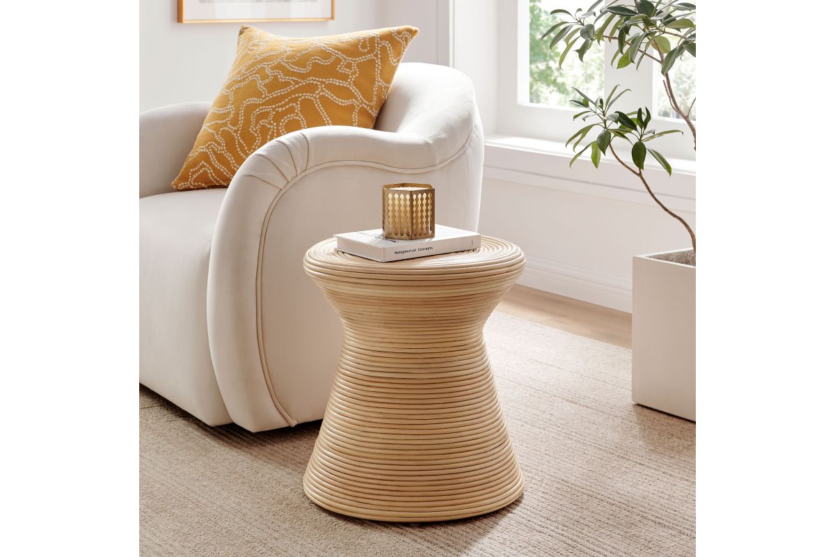 Sculptural yet grounded, the Tavi Round Side Table brings natural charm to living rooms, bedrooms, and sun-drenched nooks. Featuring an airy hourglass shape made of natural rattan, this round accent table adds texture and visual interest to any space. Use it as a perch for books, plants, or a morning coffee beside your favorite lounge chair. Designed for everyday ease, Tavi arrives fully assembled and includes non-marking foot caps to help protect wood or tile floors. While intended for indoor use, it also makes a stylish addition to covered patios or breezy garden rooms. Product Note: Due to the natural qualities of rattan, slight variations in color and pattern are to be expected, adding to each piece's unique character.