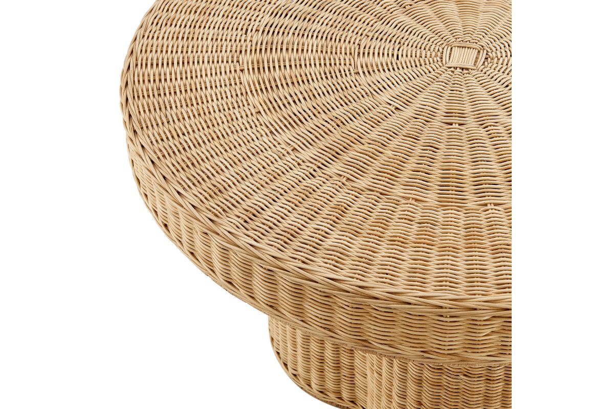 The Ainsley 32" Round Coffee Table adds natural texture and an artful shape to living rooms, sunrooms, and cozy indoor lounges. Made entirely from natural rattan, its sculpted three-pillar base forms a rounded triangle silhouette that feels both organic and architectural—offering more visual interest than a standard pedestal. Topped with a spacious 32-inch surface, this woven accent table is ideal for serving snacks, holding drinks, or displaying your favorite décor. Designed for everyday use, it arrives fully assembled and features non-marking foot caps to help protect floors. Whether styled indoors or on a covered patio, Ainsley brings an easygoing, relaxed vibe to any setup. Product Note: Due to the natural qualities of rattan, slight variations in color and pattern are to be expected, adding to each piece’s unique character.