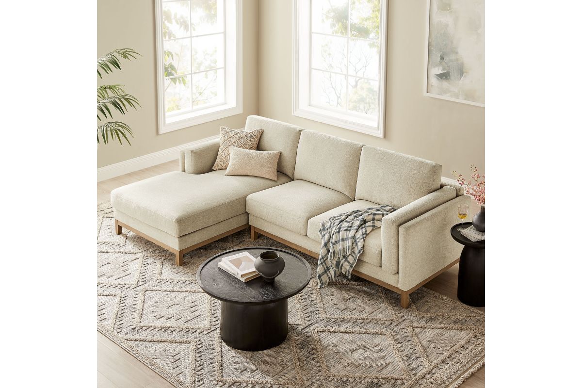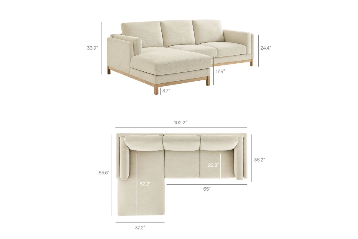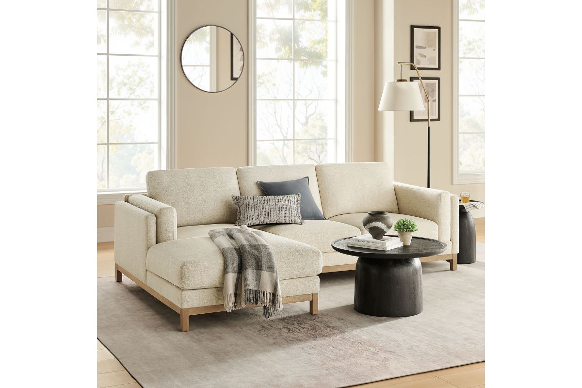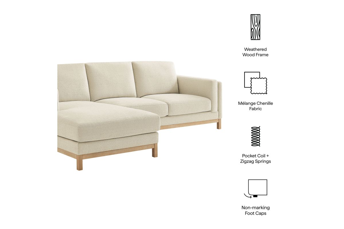 Refined lines and enduring design shape the Roscoe L-shaped Sectional Sofa with Chaise, a tailored take on American-traditional style. This two-piece configuration includes a left-facing chaise and a right-facing sofa, upholstered in soft and subtle Mélange Chenille for a smooth, heathered texture. Designed with plush seat cushions and spring pocket coil + sinuous spring support, this sectional couch offers deep, sink-in comfort with a grounded silhouette. Featuring high resiliency foam, the low-profile frame sits on a kiln-dried weathered wood base with integrated legs and non-marking foot caps for added stability and floor protection. Weight Capacity: 800 lbs per piece.