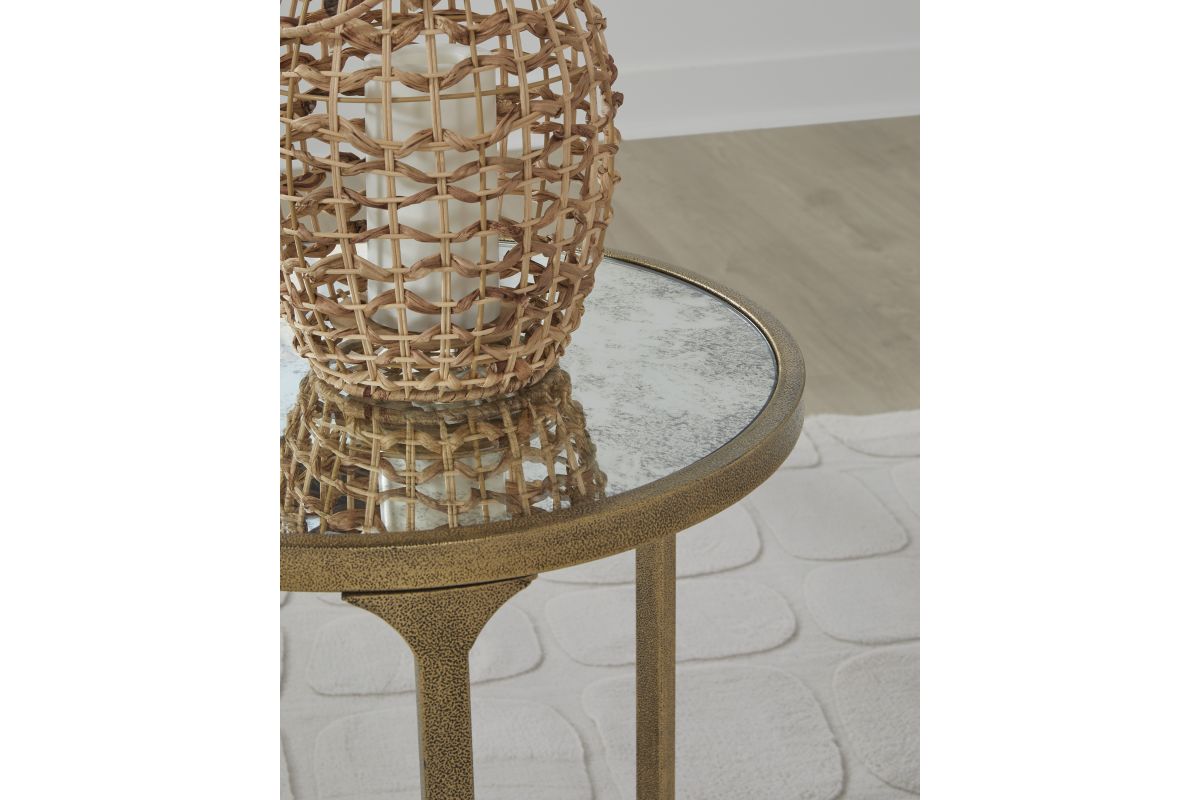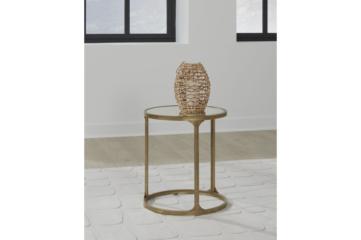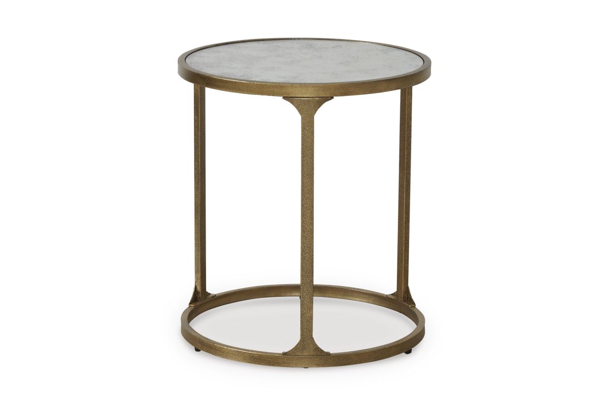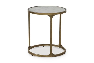 This end table blends a traditional feel with contemporary design cues. Antiqued gold texturing on the frame has the look of timeworn, hand-forged metal. A tempered glass top with a faux marble finish provides a refined contrast. Chic when hosting decor, a lamp or holding entertainment essentials, this table rounds out your living room with transitional flair.